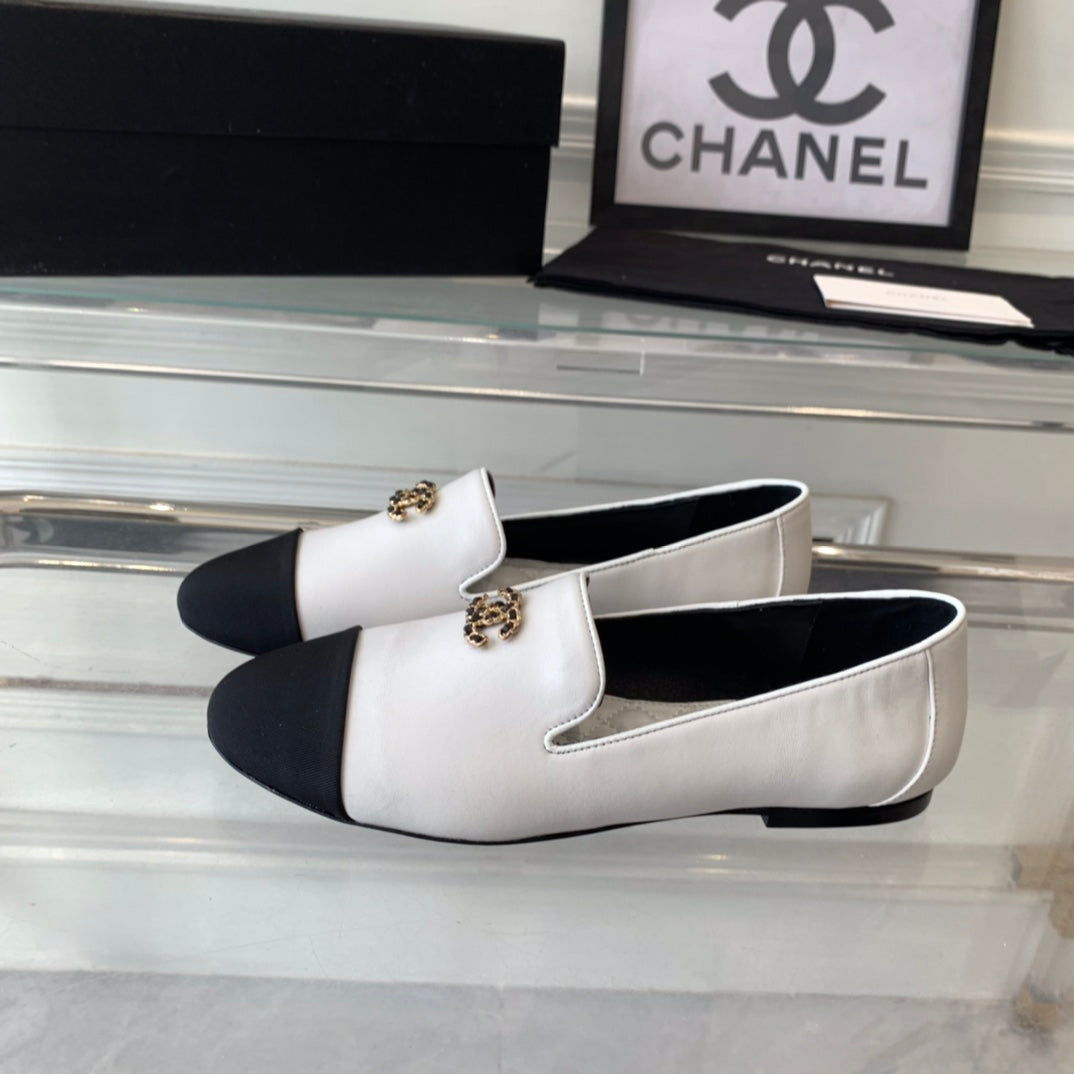 cc loafer white lambskin black grosgrain