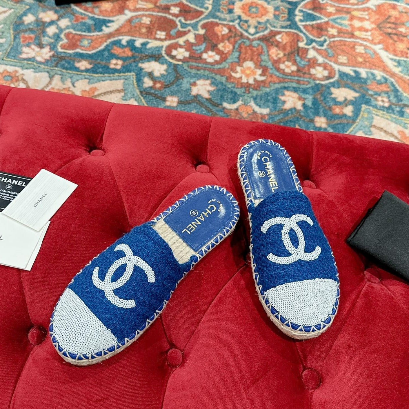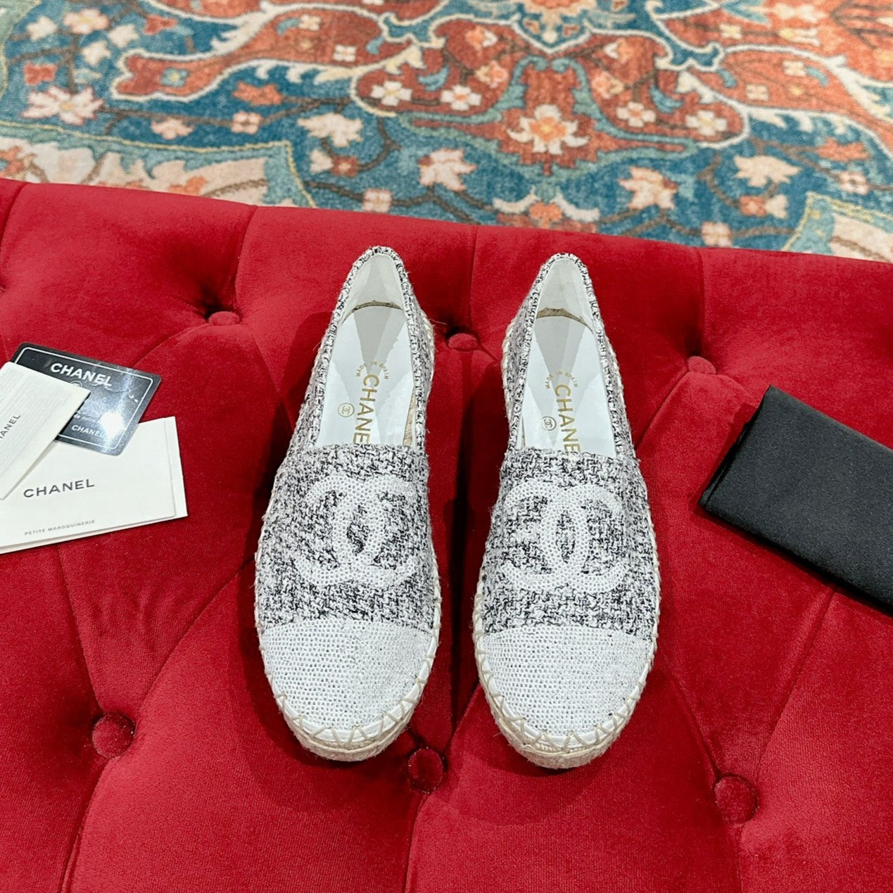 cc espadrilles multicolor tweed white calfskin