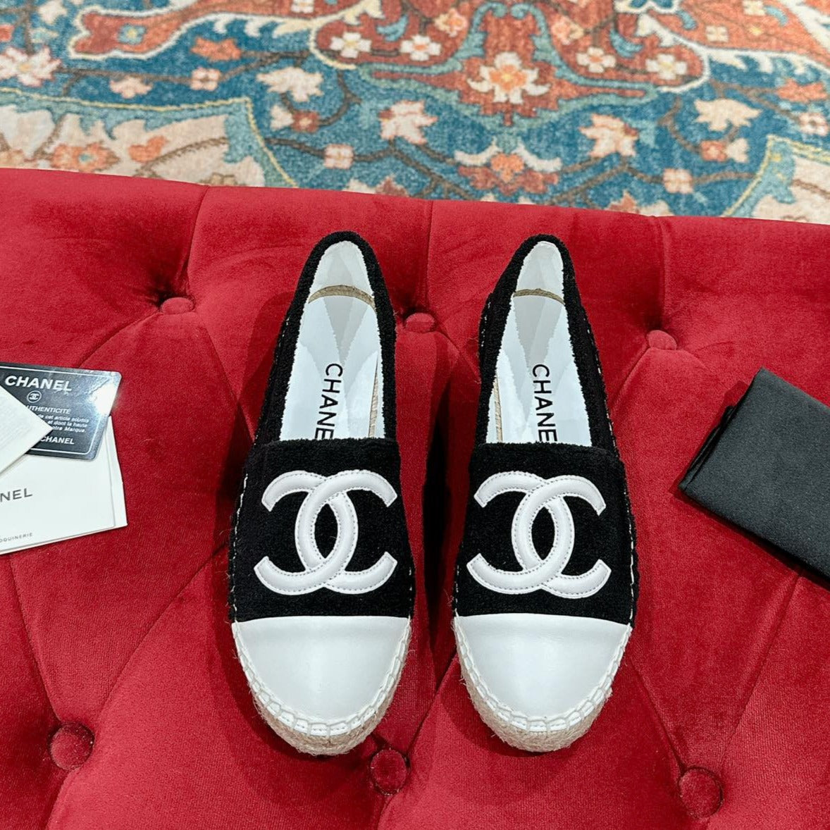 cc espadrilles beige black calfskin