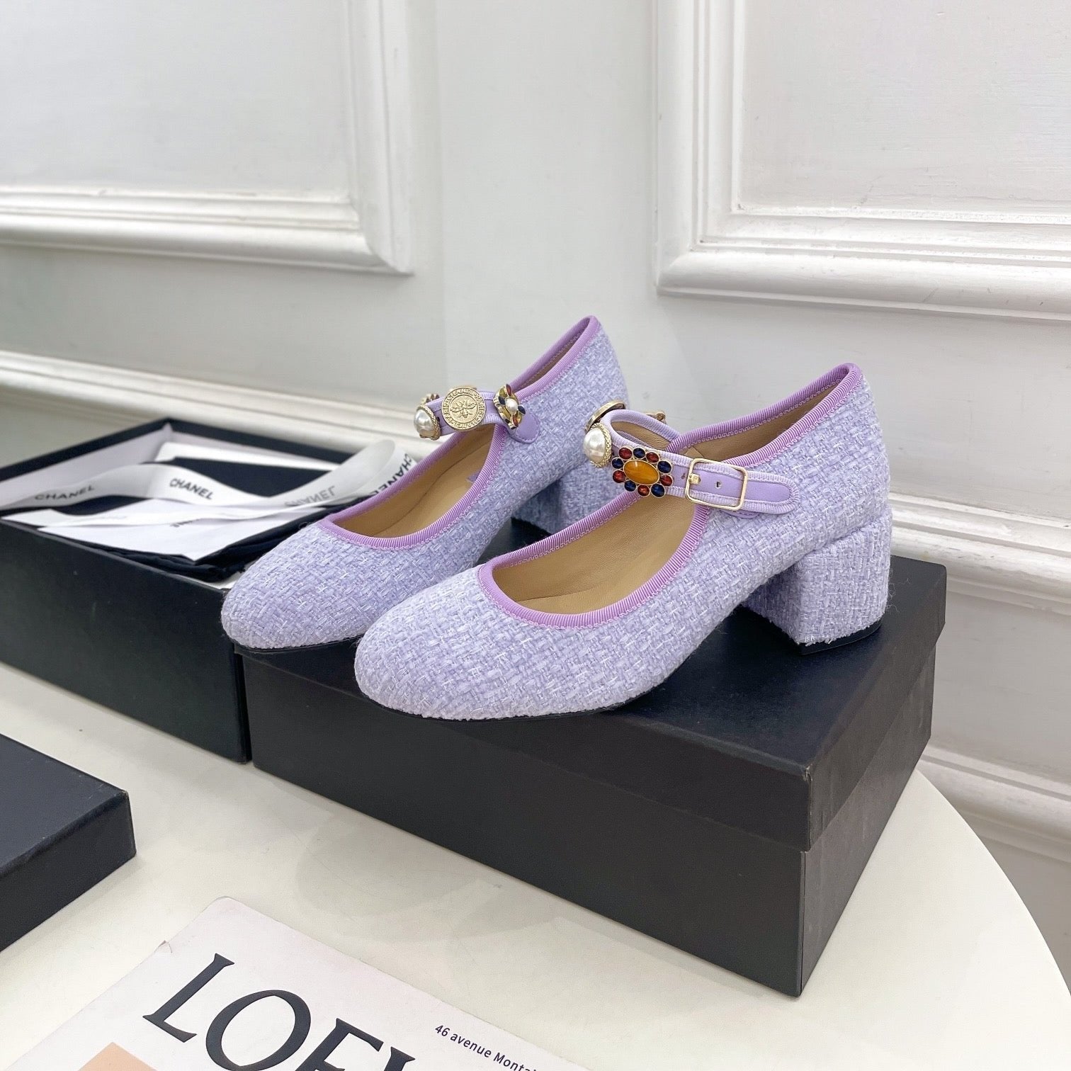 CC High Mary Janes 55mm Light Violet Wool Tweed And Fabric 948819