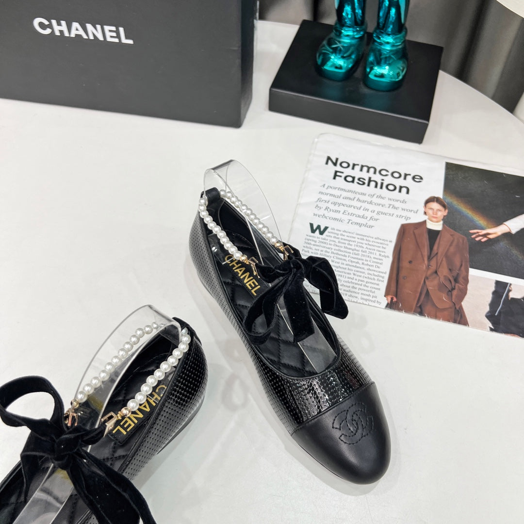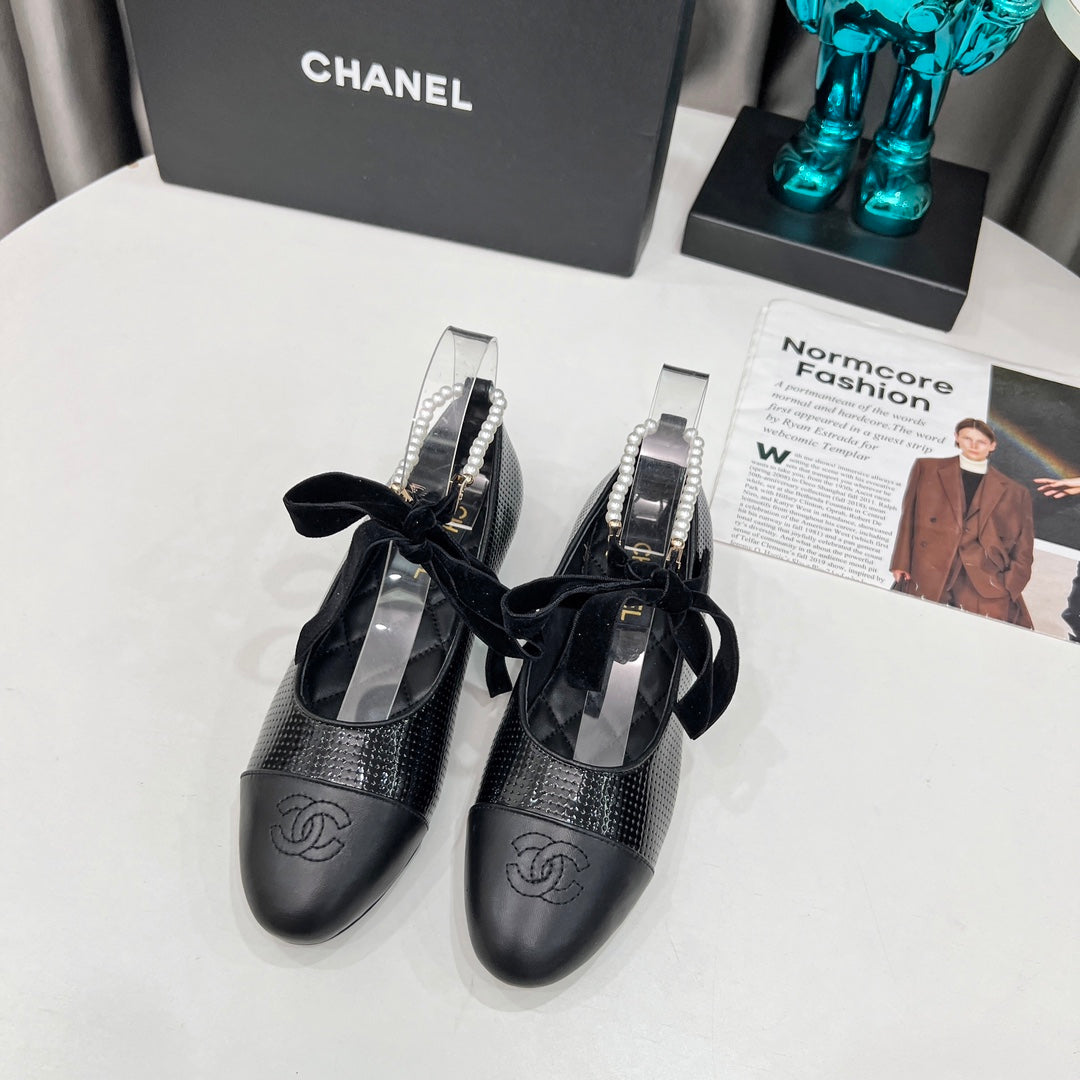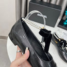 CC Mary Jane Black Studded With Pearls Lambskin And Cowhide