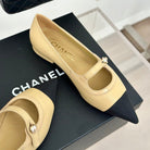 cc mary jane pointed toe beige calfskin black grosgrain