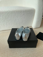 Pointed Toe Mary Jane Shoes Silver Mix Black Lambskin