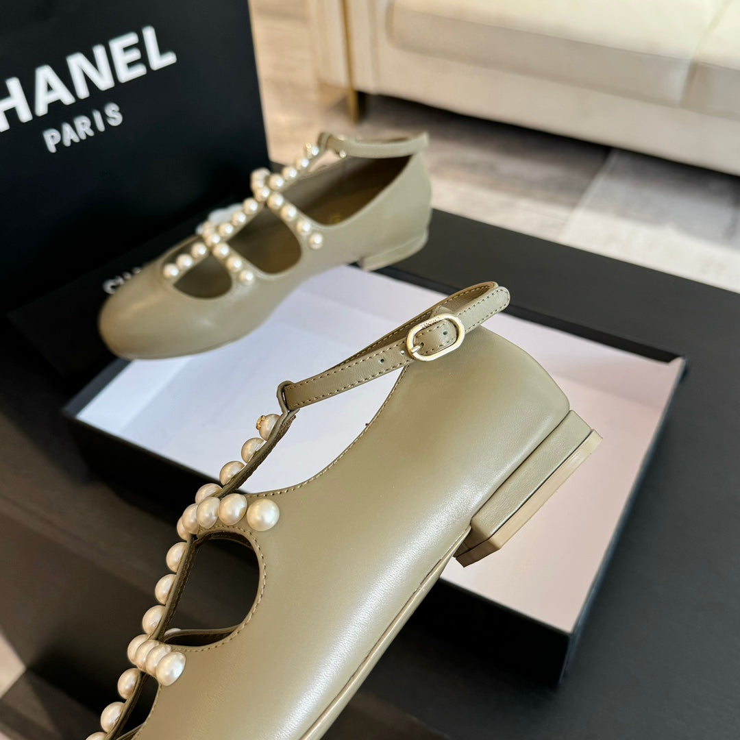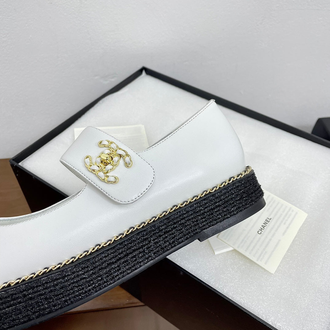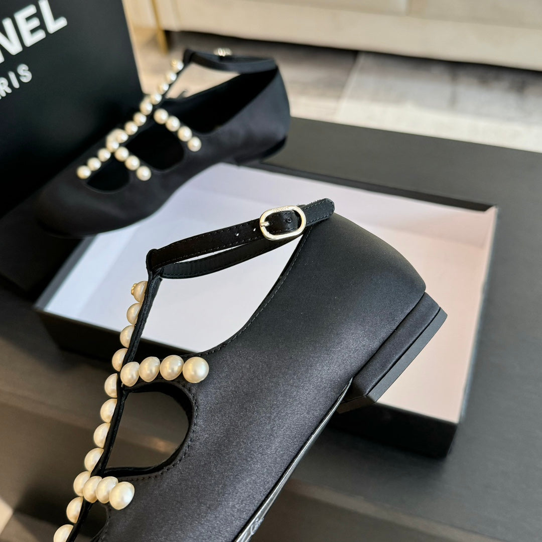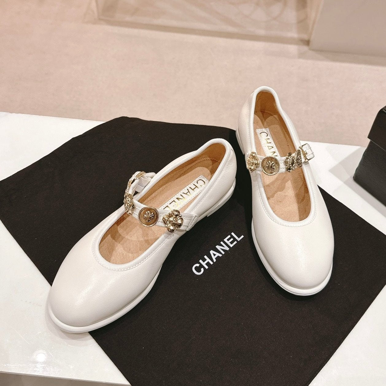 CC Mary Jane White Black Studded With Pearls Lambskin