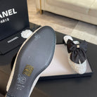BIG BOW FLAT MULE SANDALS IN WHITE SILK WITH GLITTER SEQUINS