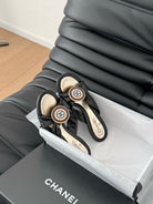 BLACK LAMBSKIN CC SLIDE SANDALS