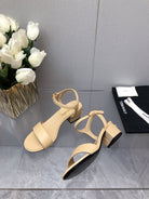 BLOCK HEEL 5 CM SANDAL IN SAND BROWN LAMBSKIN