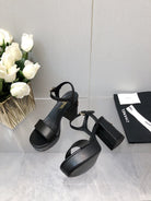 BLOCK HEEL 9 CM SANDAL IN BLACK LAMBSKIN