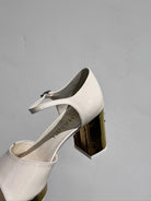 BLOCK HEEL SANDALS WHITE SHEEPSKIN