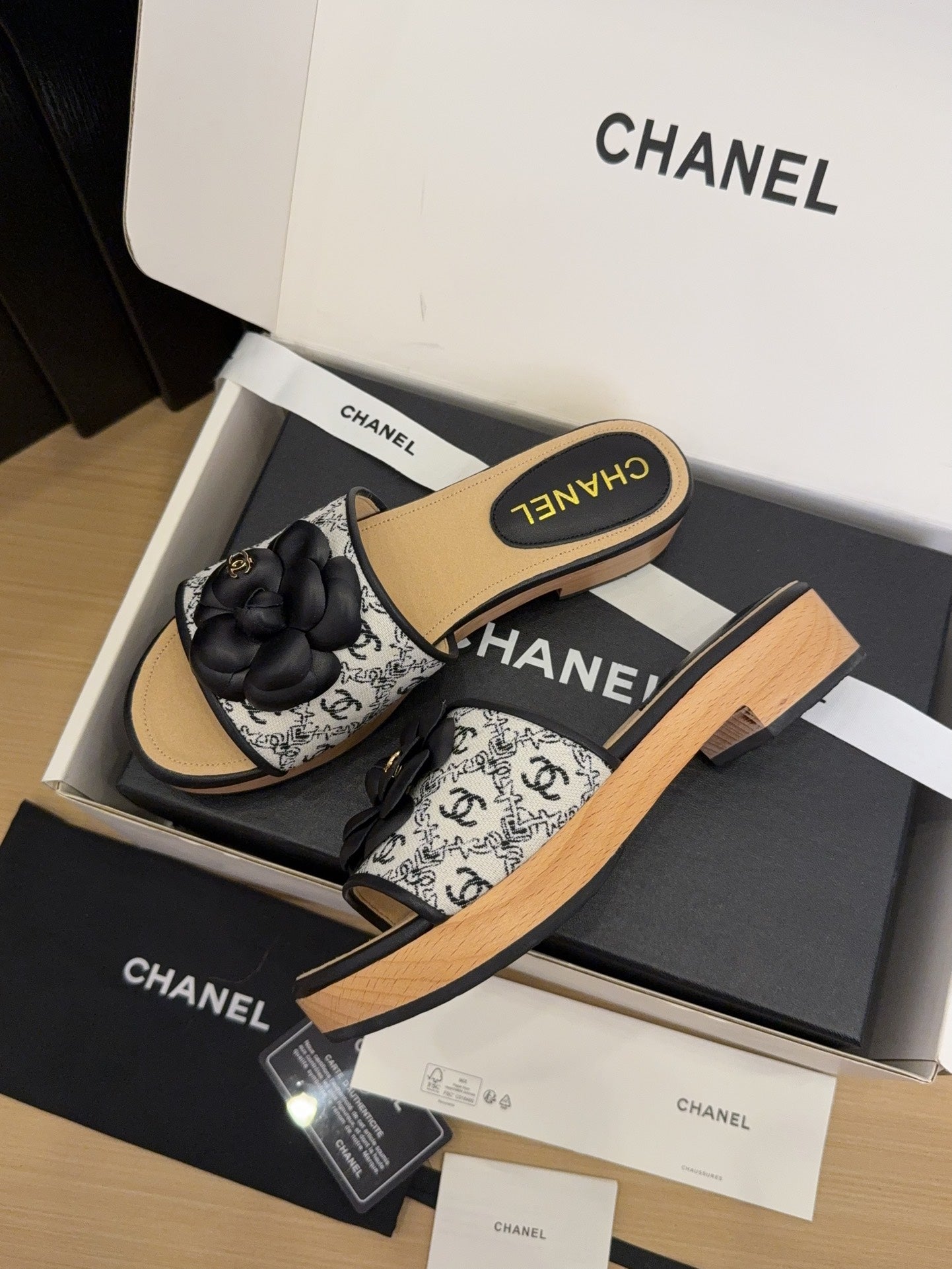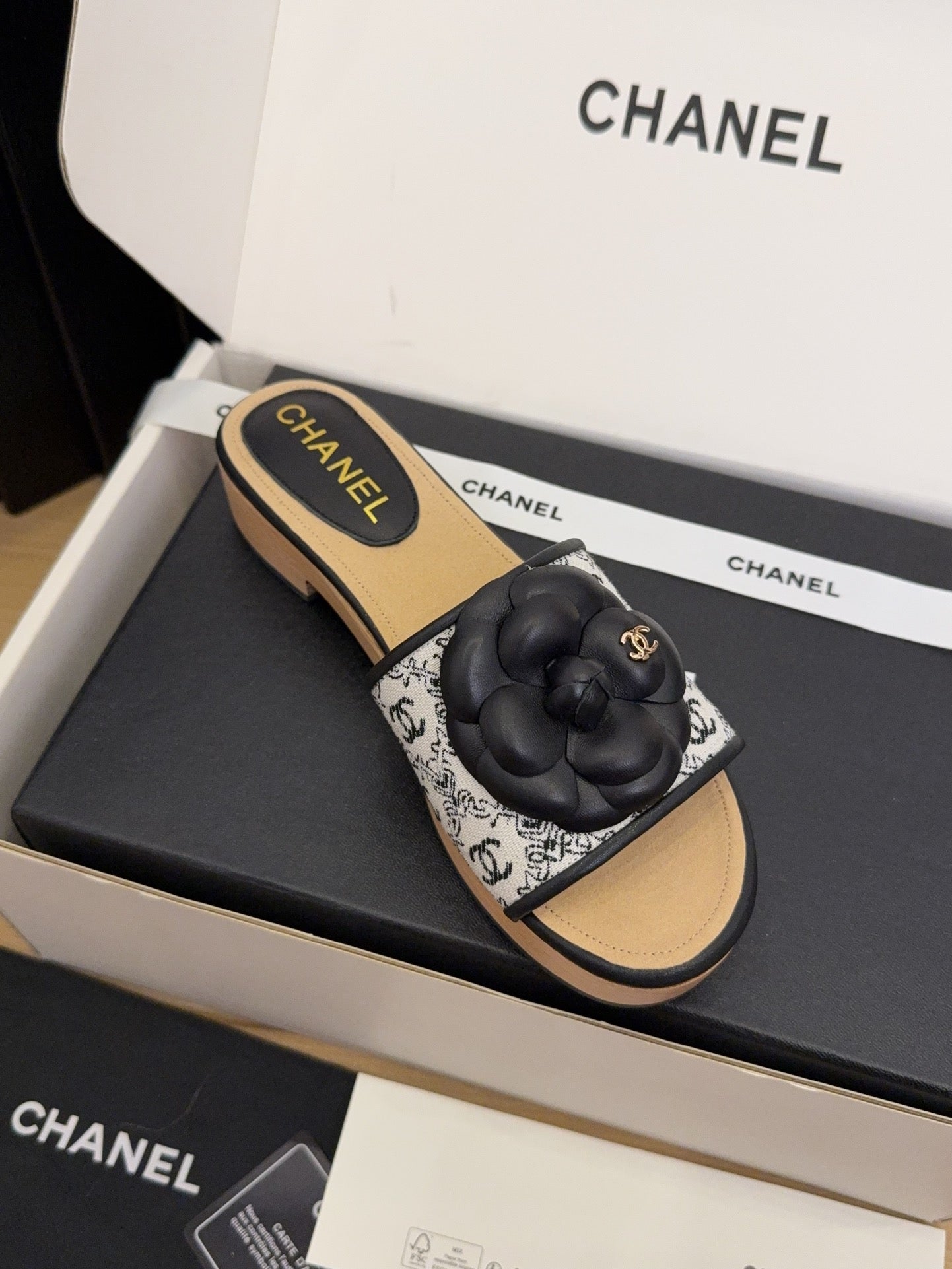CC 25 Camellia Mule 40 Black Fabric And Beige Leather 277718