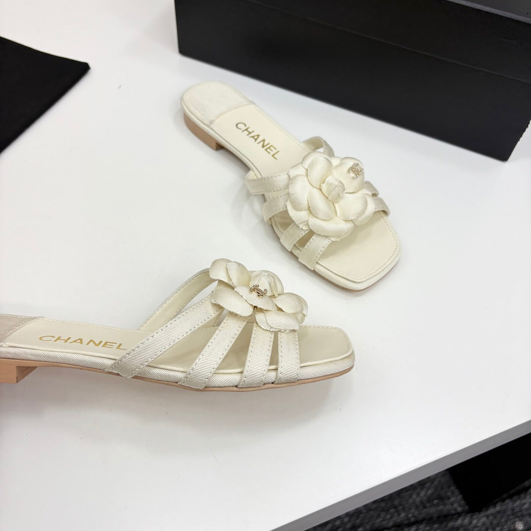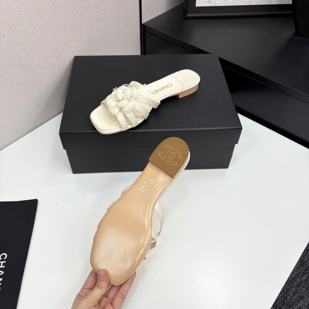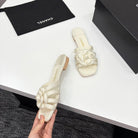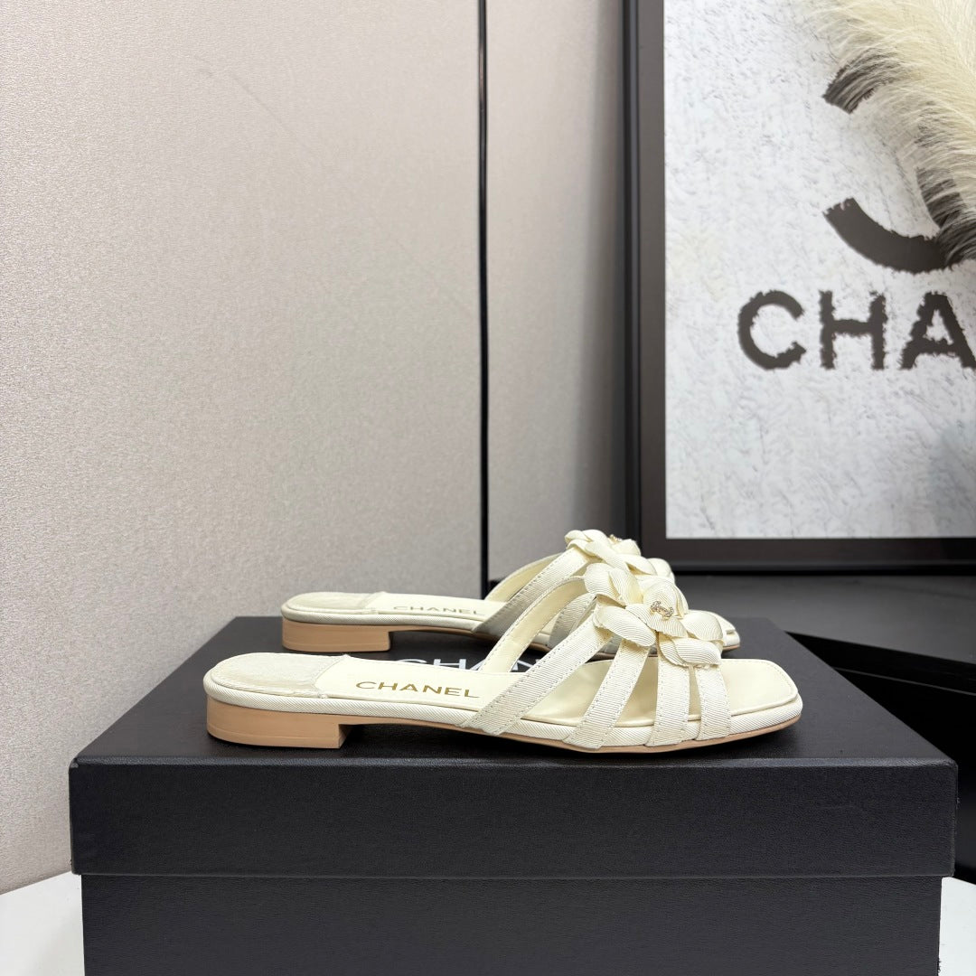 CC 25 Camellia Open Flat Mule Ivory Sheepskin And Fabric 368849