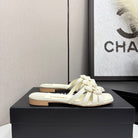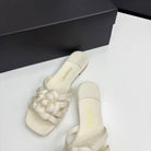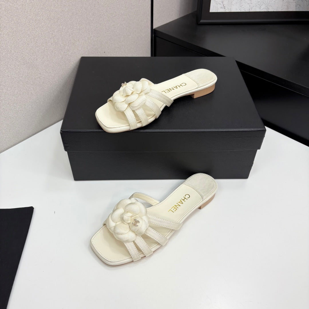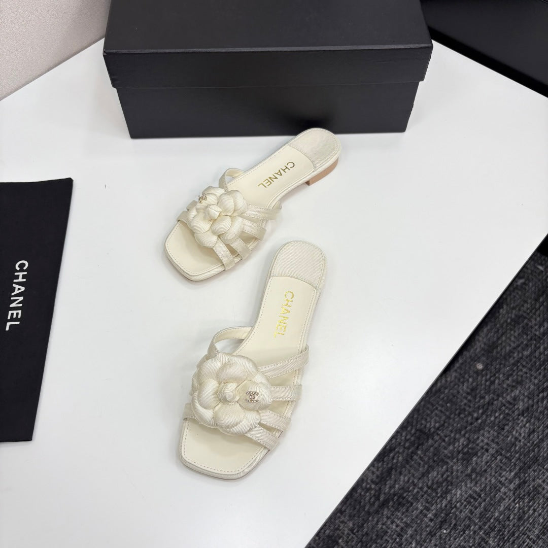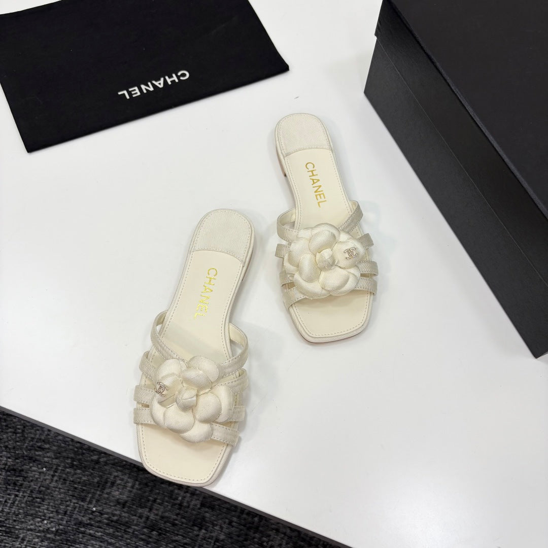 CC 25 Camellia Open Flat Mule Ivory Sheepskin And Fabric 368849