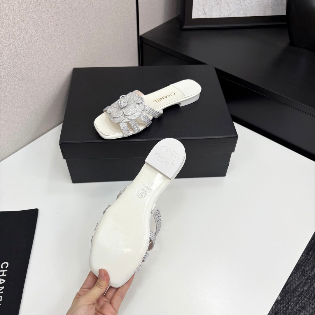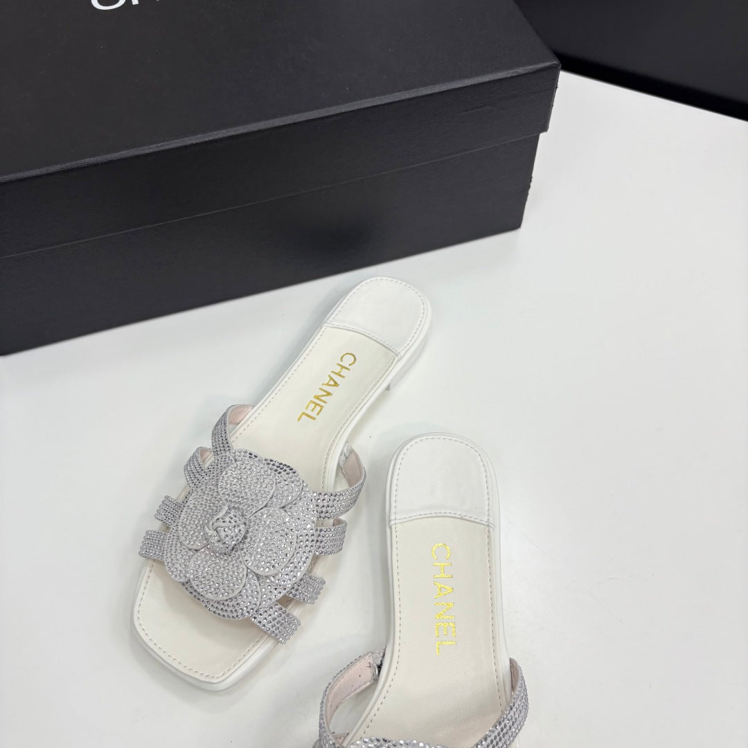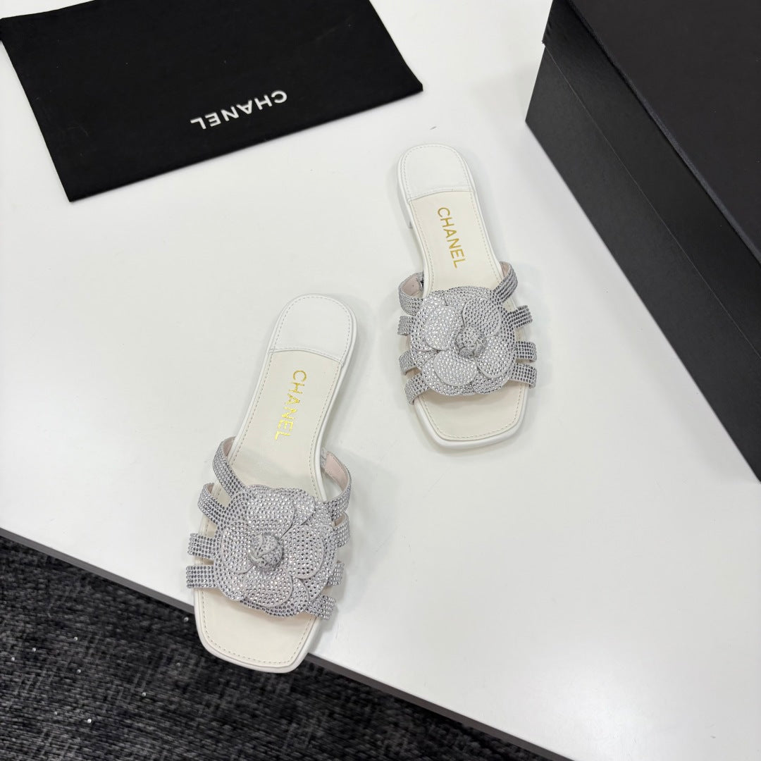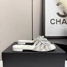 CC 25 Camellia Open Flat Mule Silver Stone Grain And Sheepskin 368852