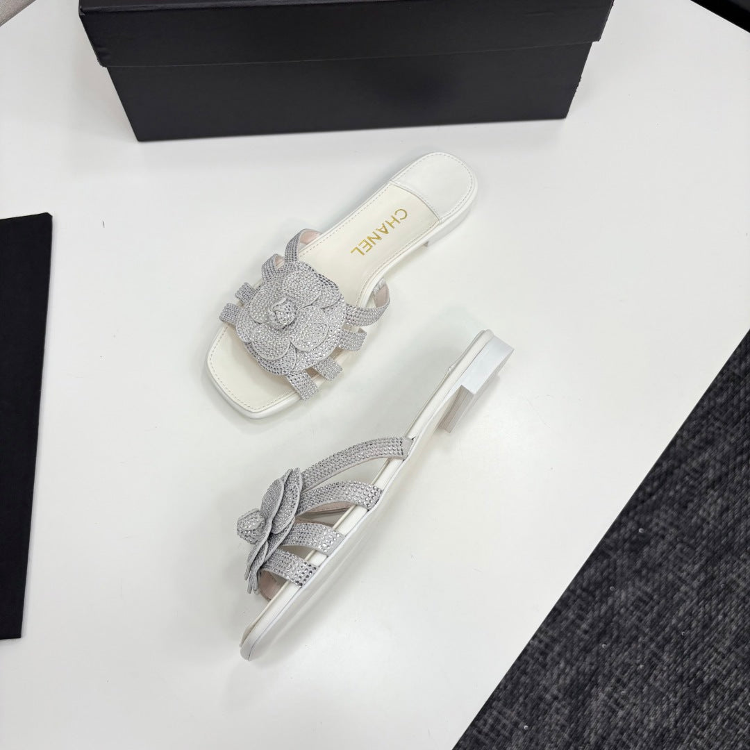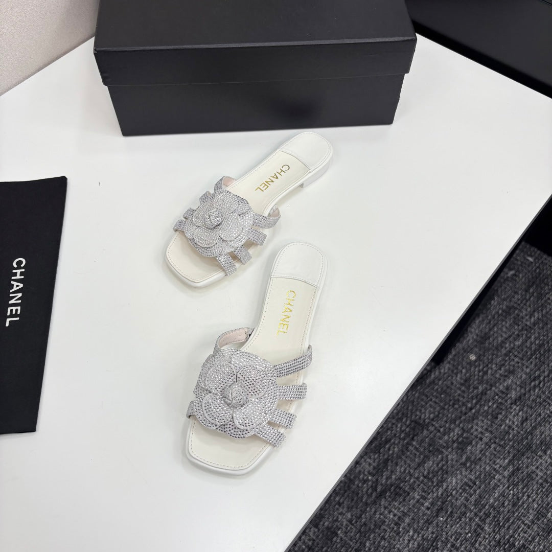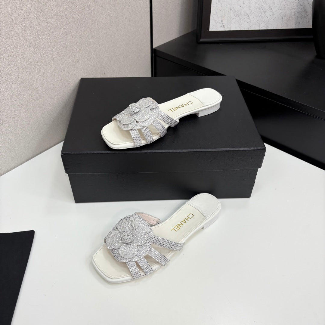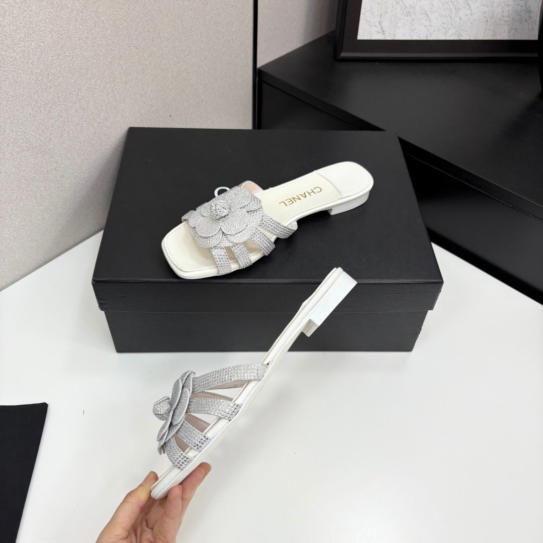 CC 25 Camellia Open Flat Mule Silver Stone Grain And Sheepskin 368852
