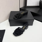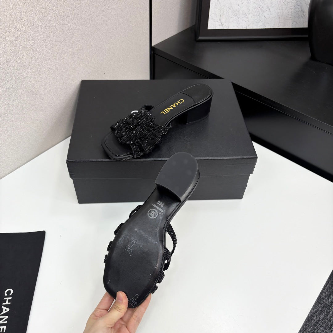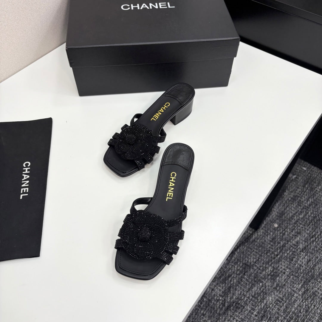 CC 25 Camellia Open Heel Mule Sandals 50mm Black Stone Grain And Sheepskin 368860