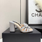 CC 25 Camellia Open Heel Mule Sandals 90mm Grey Beige Sheepskin And Fabric 368842