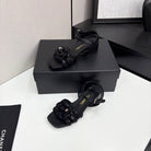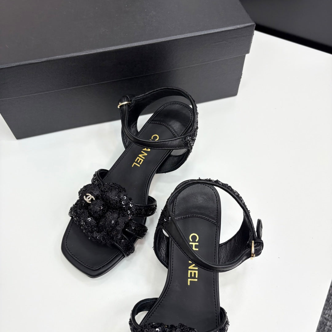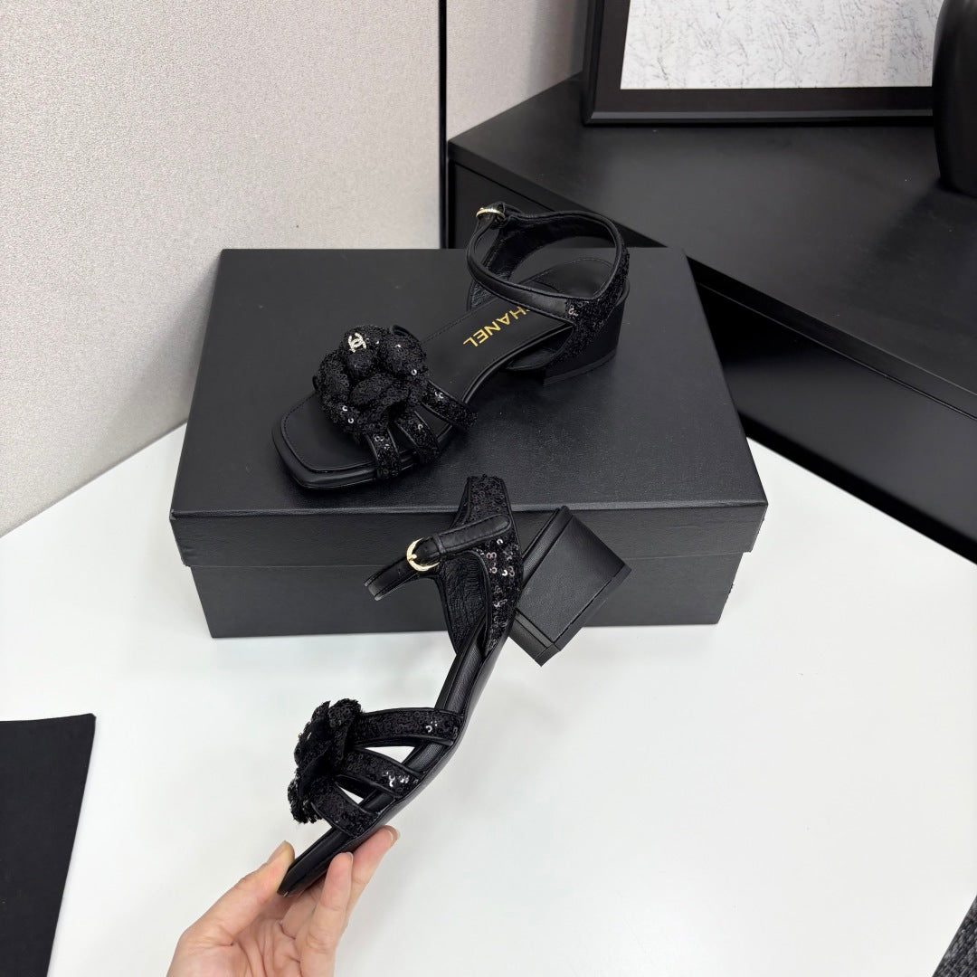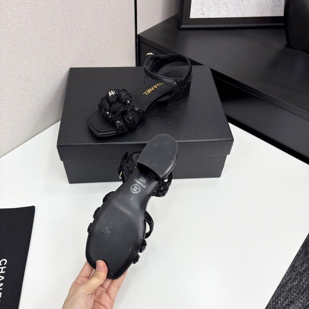 CC 25 Camellia Open Heel Sandals 50mm Black Coarse Glitter Fabric And Sheepskin 368815