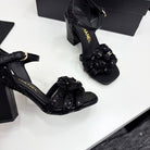 CC 25 Camellia Open Heel Sandals 90mm Black Coarse Glitter Fabric And Sheepskin 368818