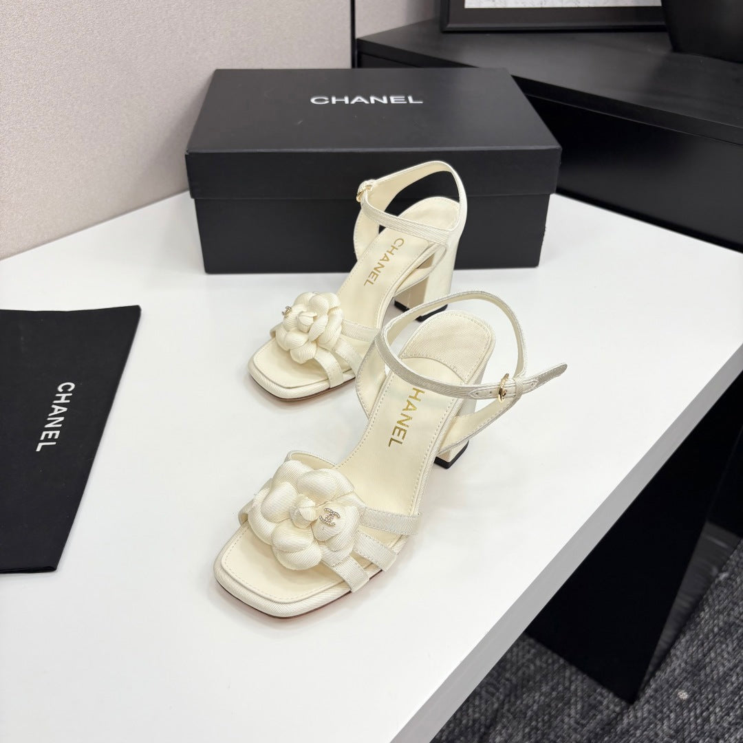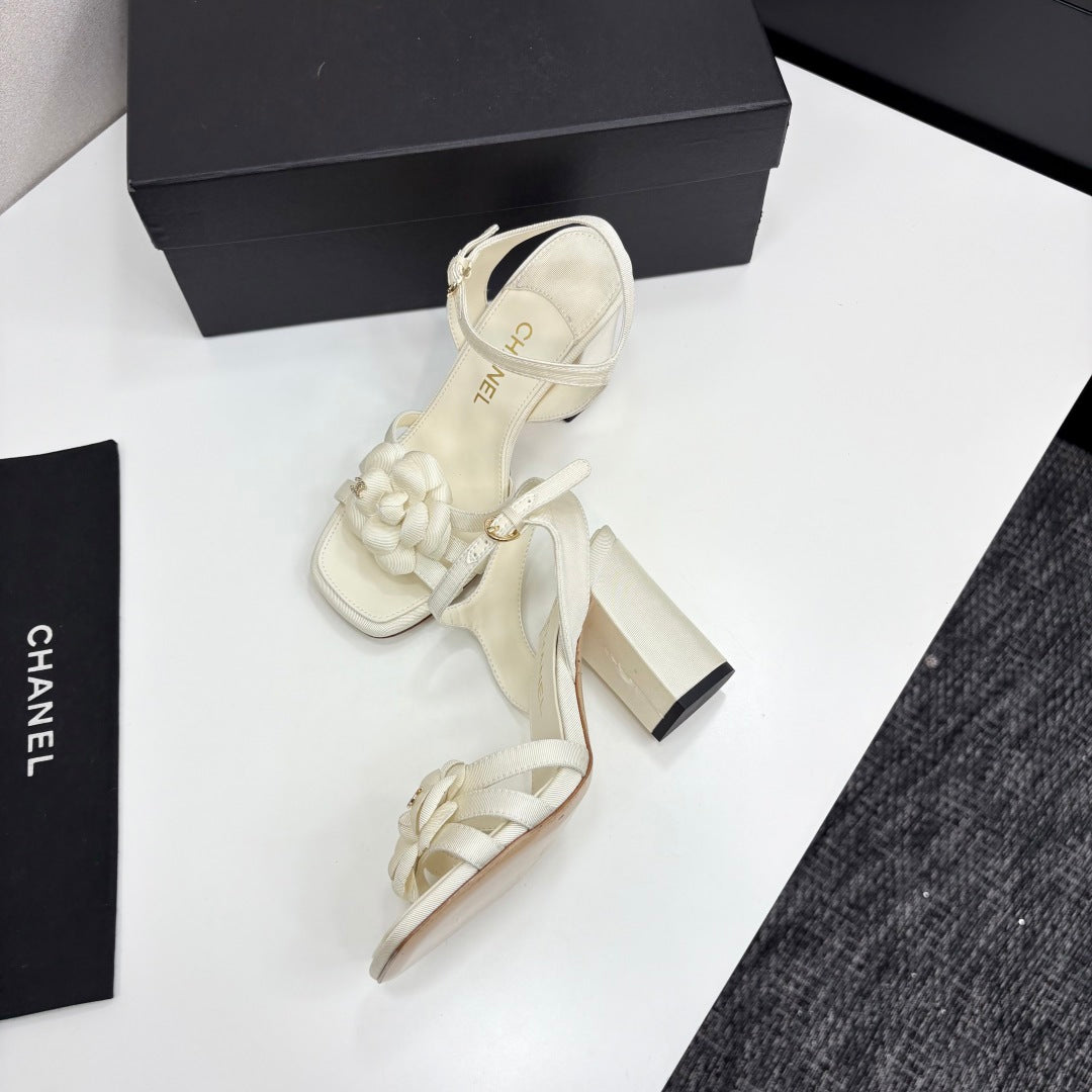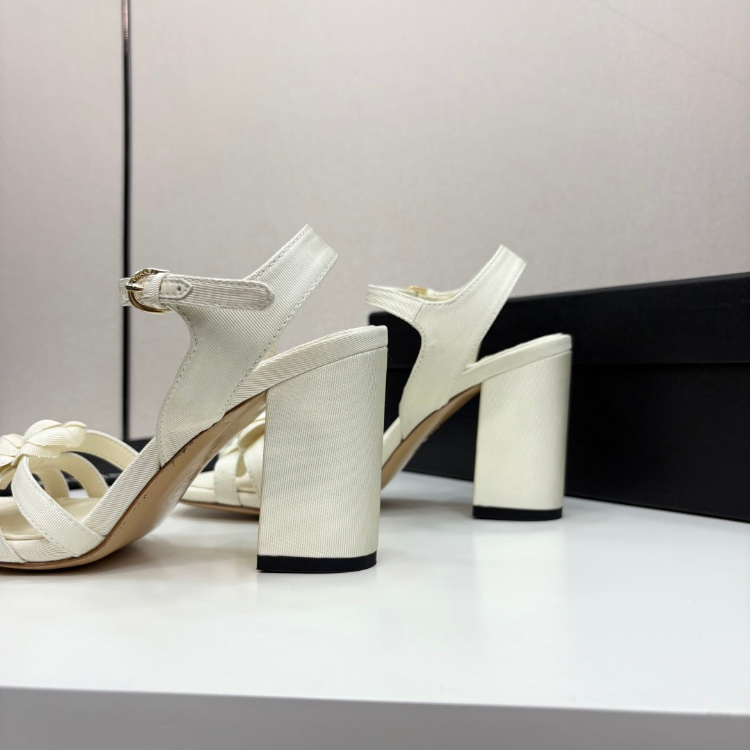 CC 25 Camellia Open Heel Sandals 90mm Ivory Sheepskin And Fabric 368816