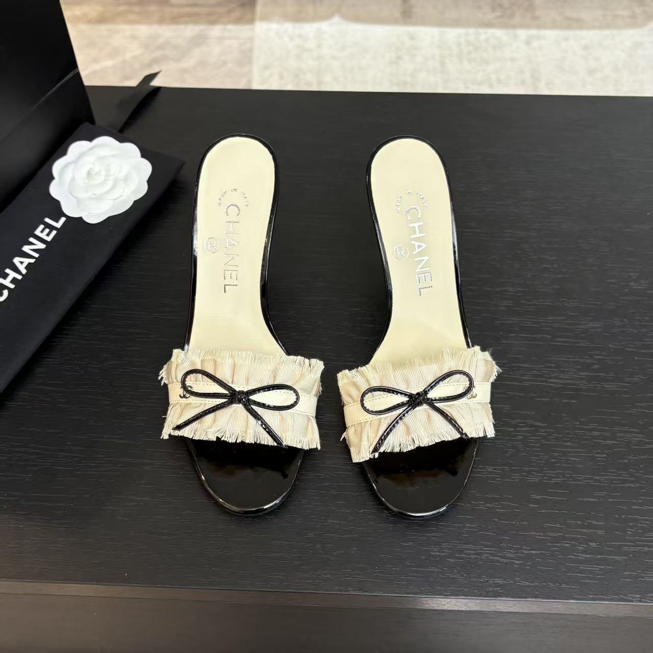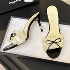 CC 25 Camellia Sandals Beige Black Silk Satin Lambskin 251720