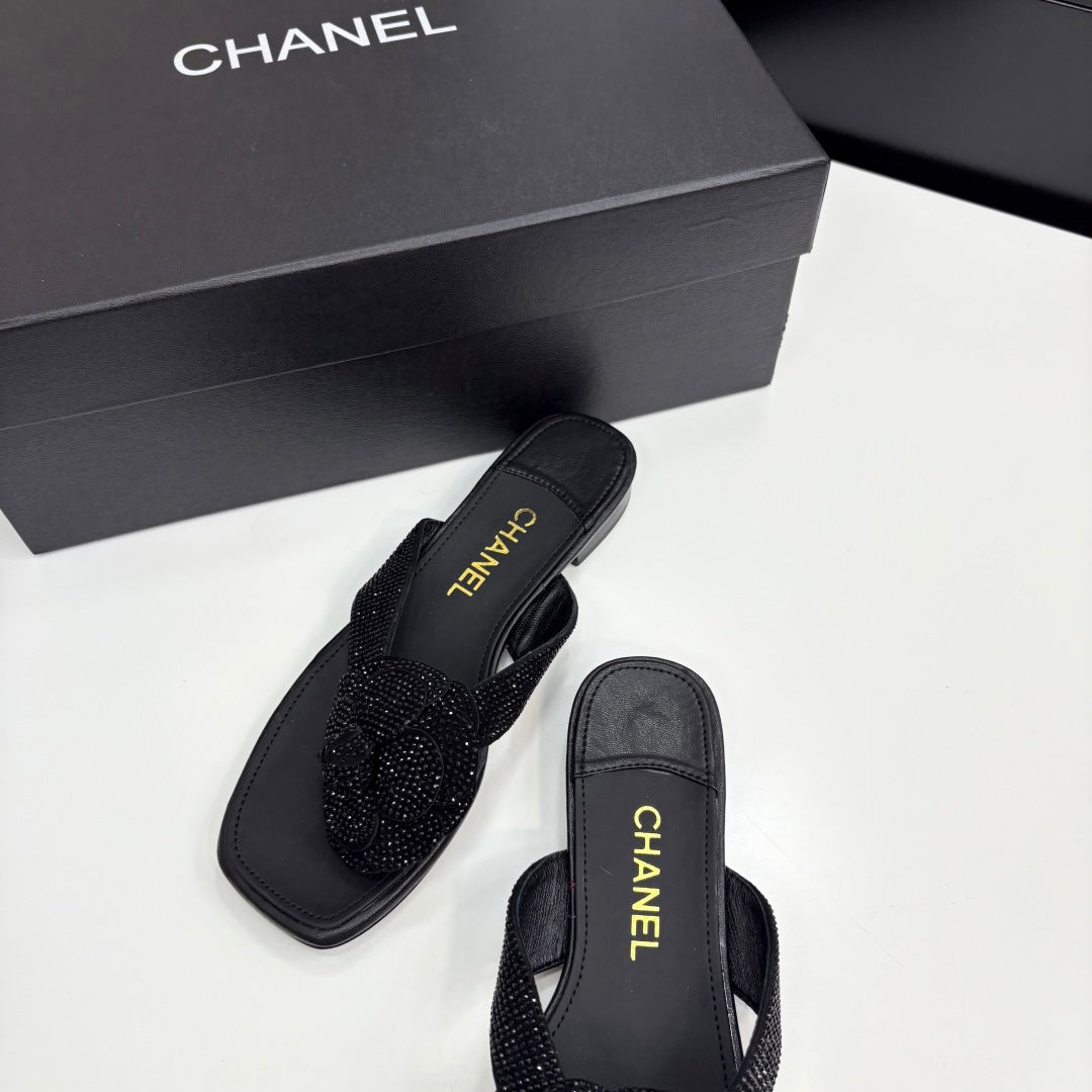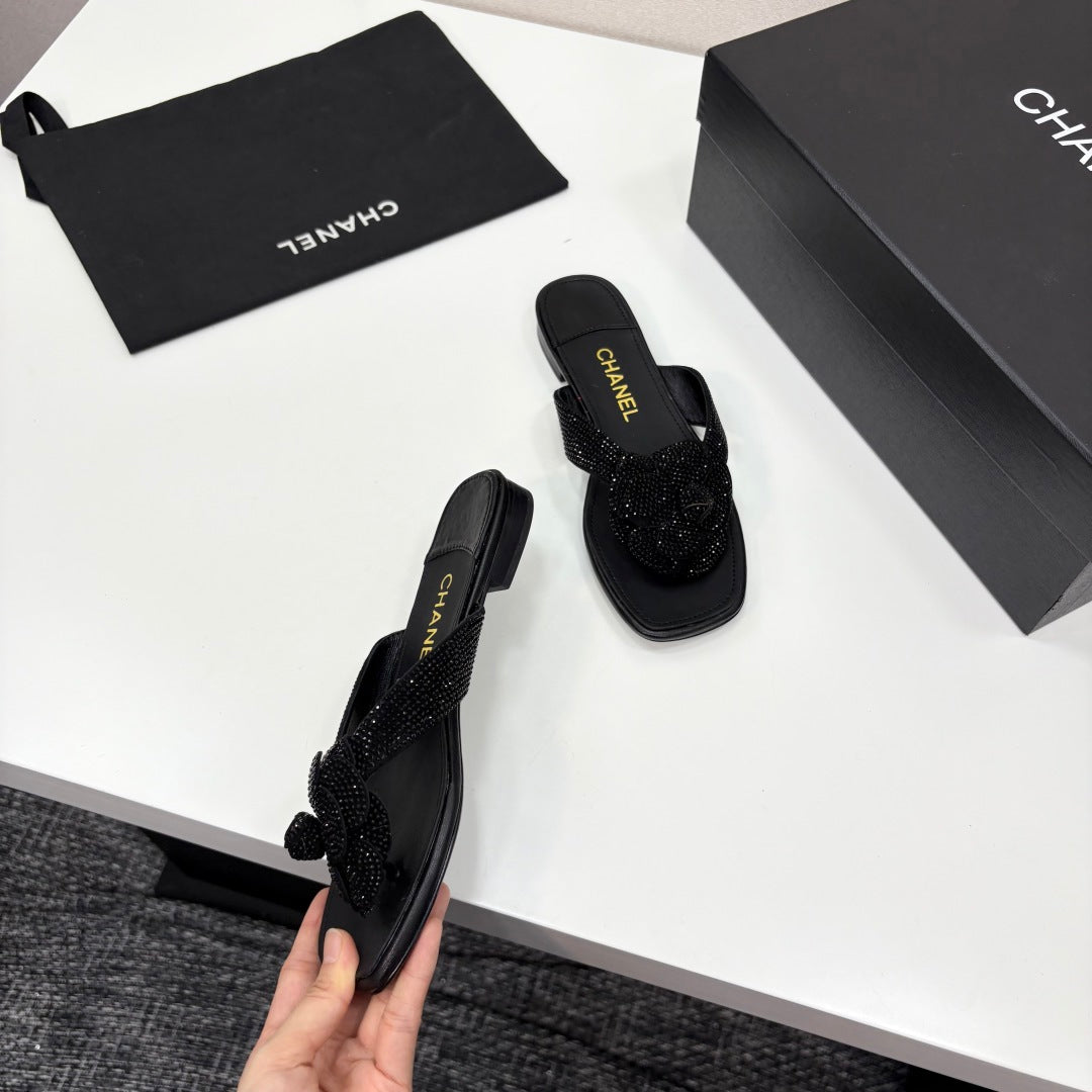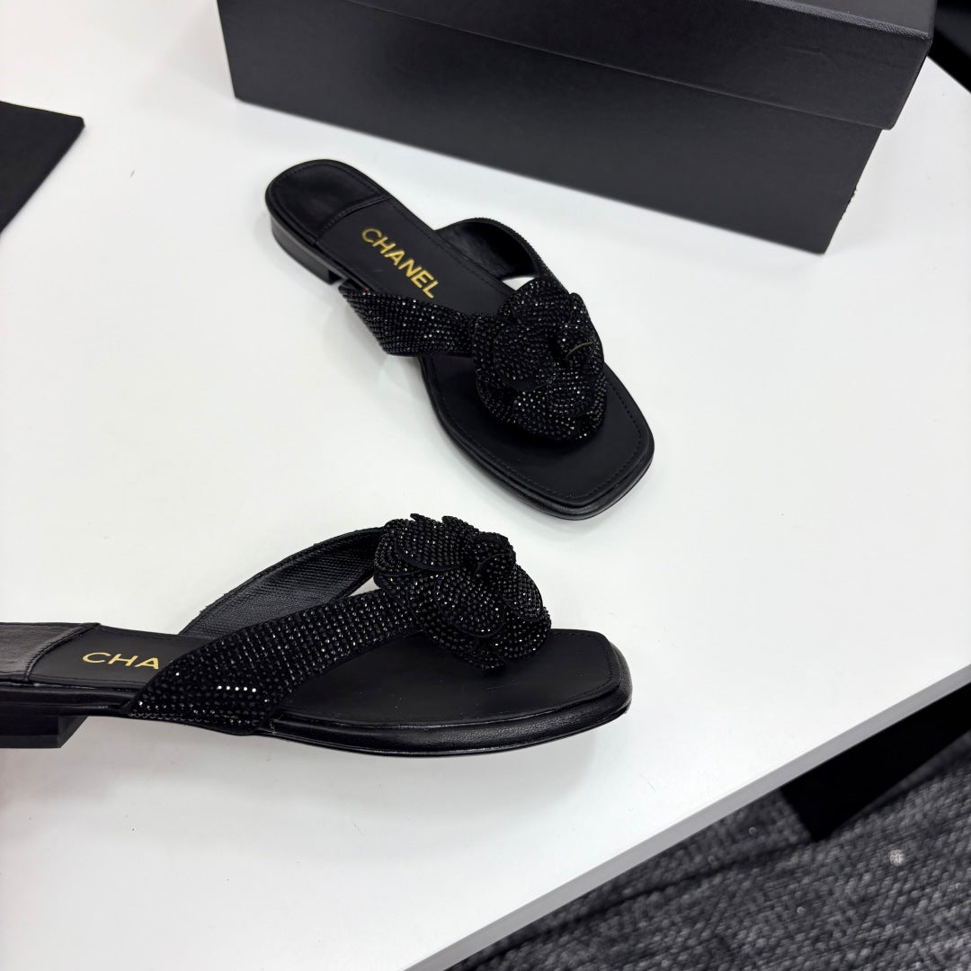 CC 25 Camellia Thong Sandals Black Stone Grain And Sheepskin 368834