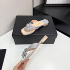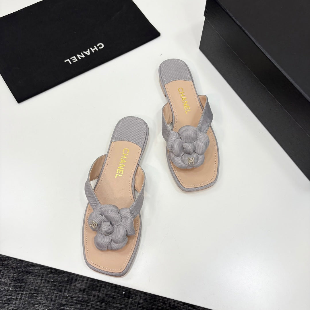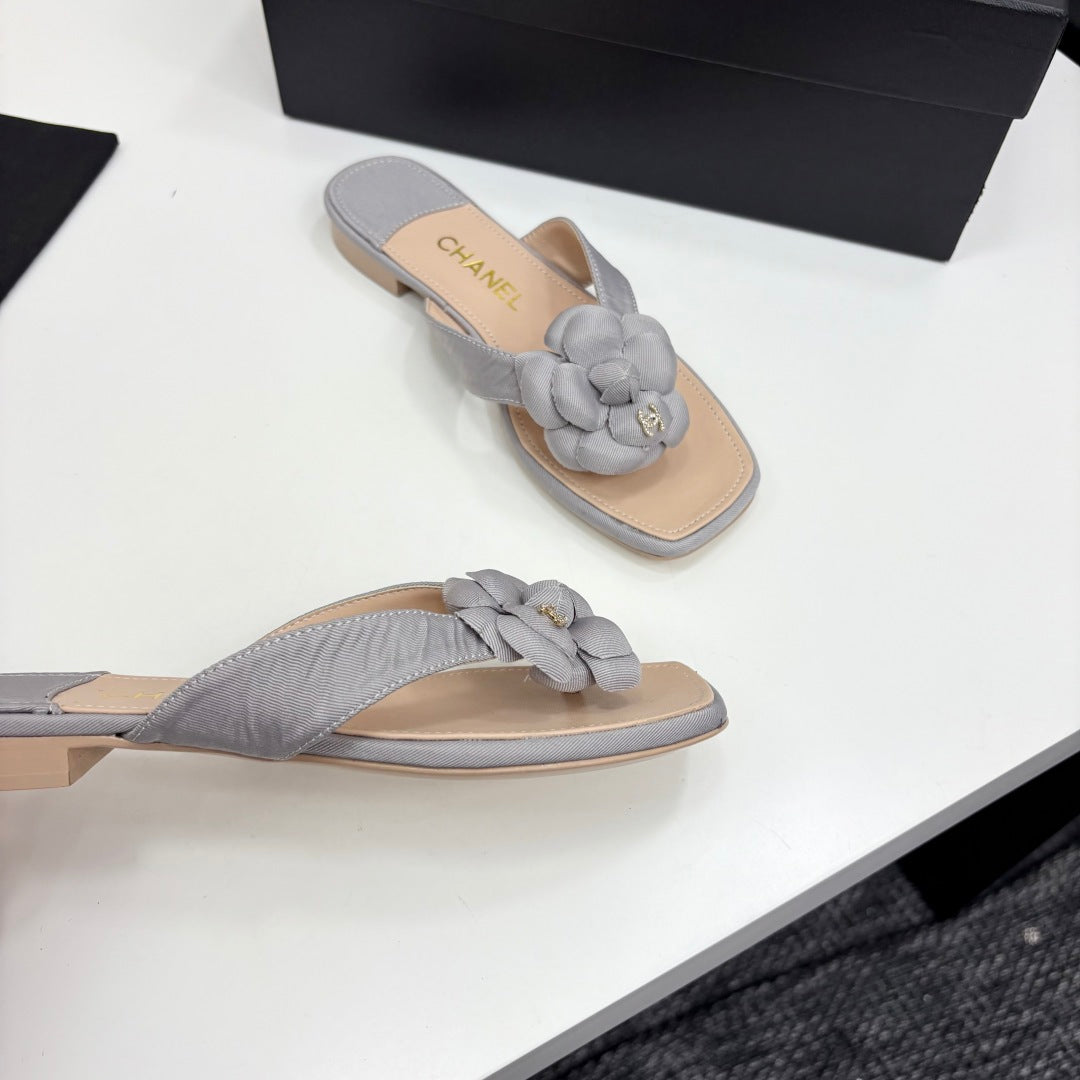 CC 25 Camellia Thong Sandals Grey Beige Sheepskin And Fabric 368837