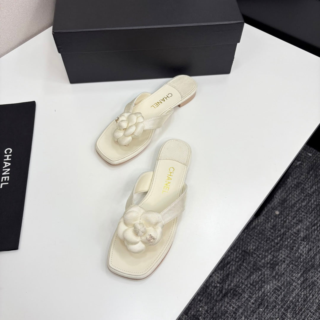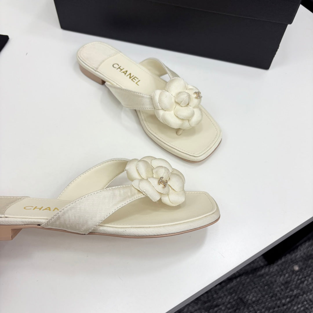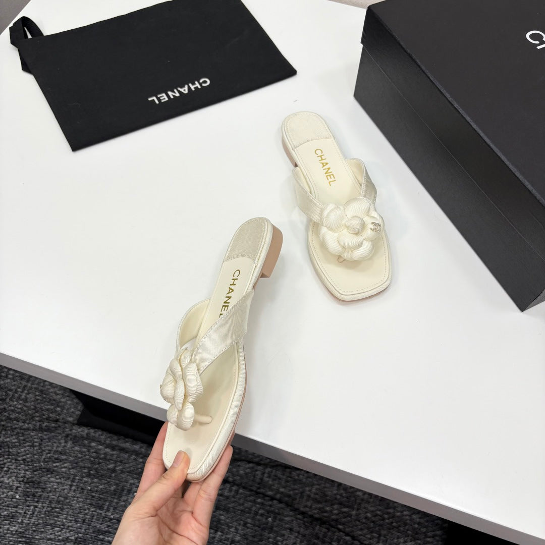 CC 25 Camellia Thong Sandals Ivory Sheepskin And Fabric 368836
