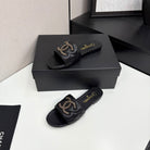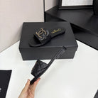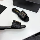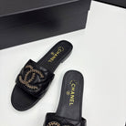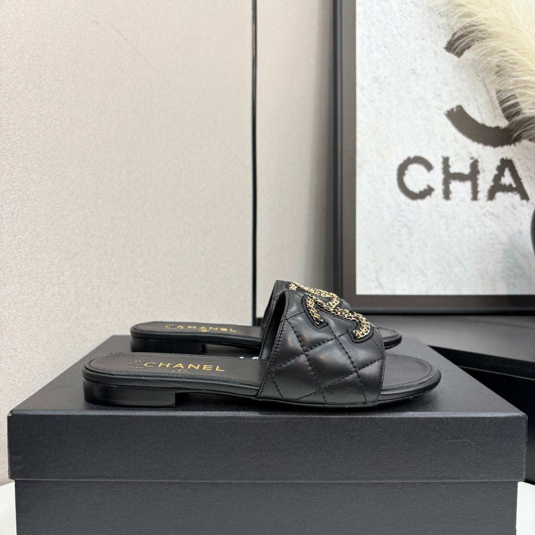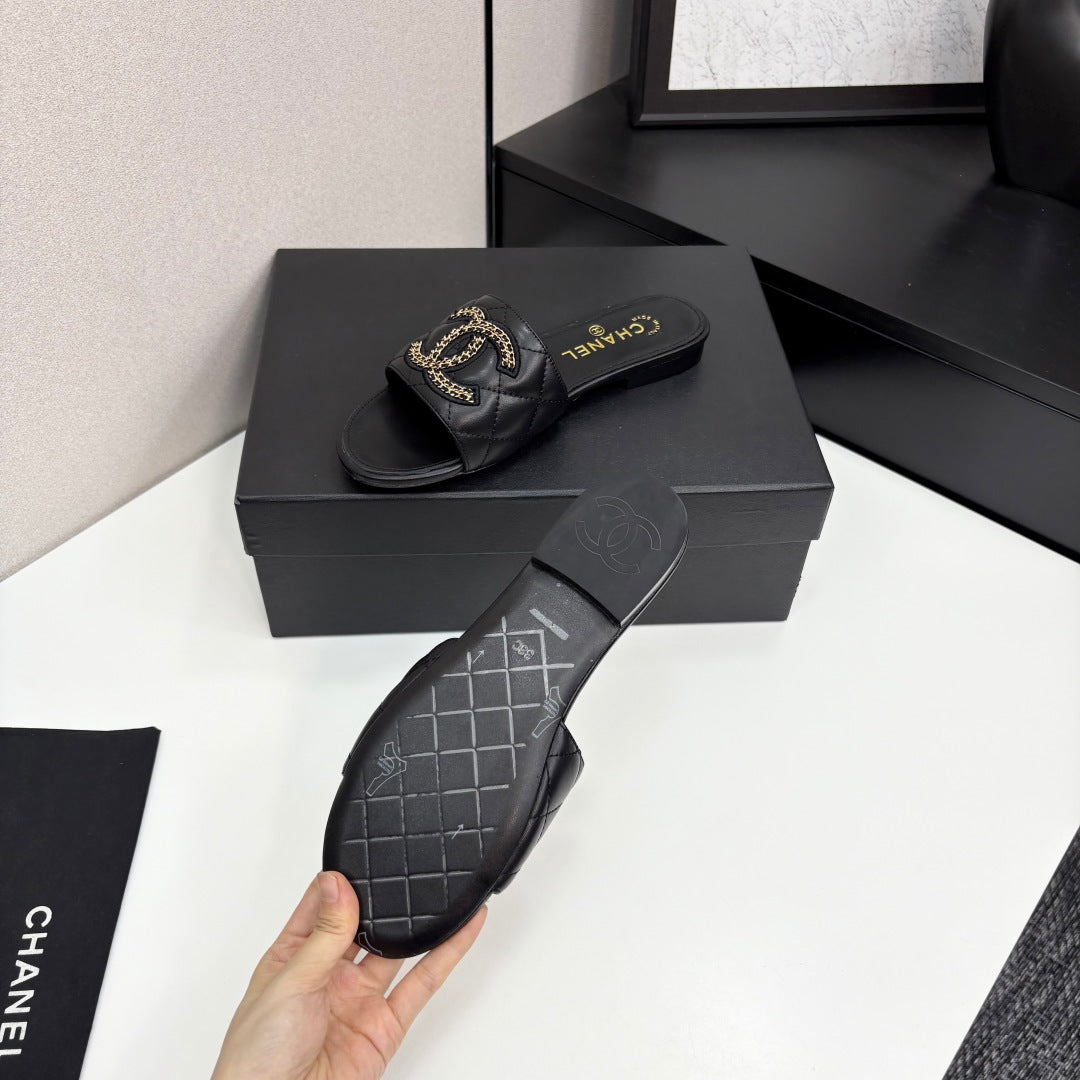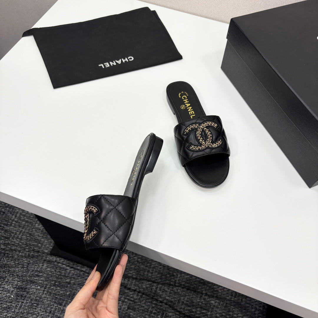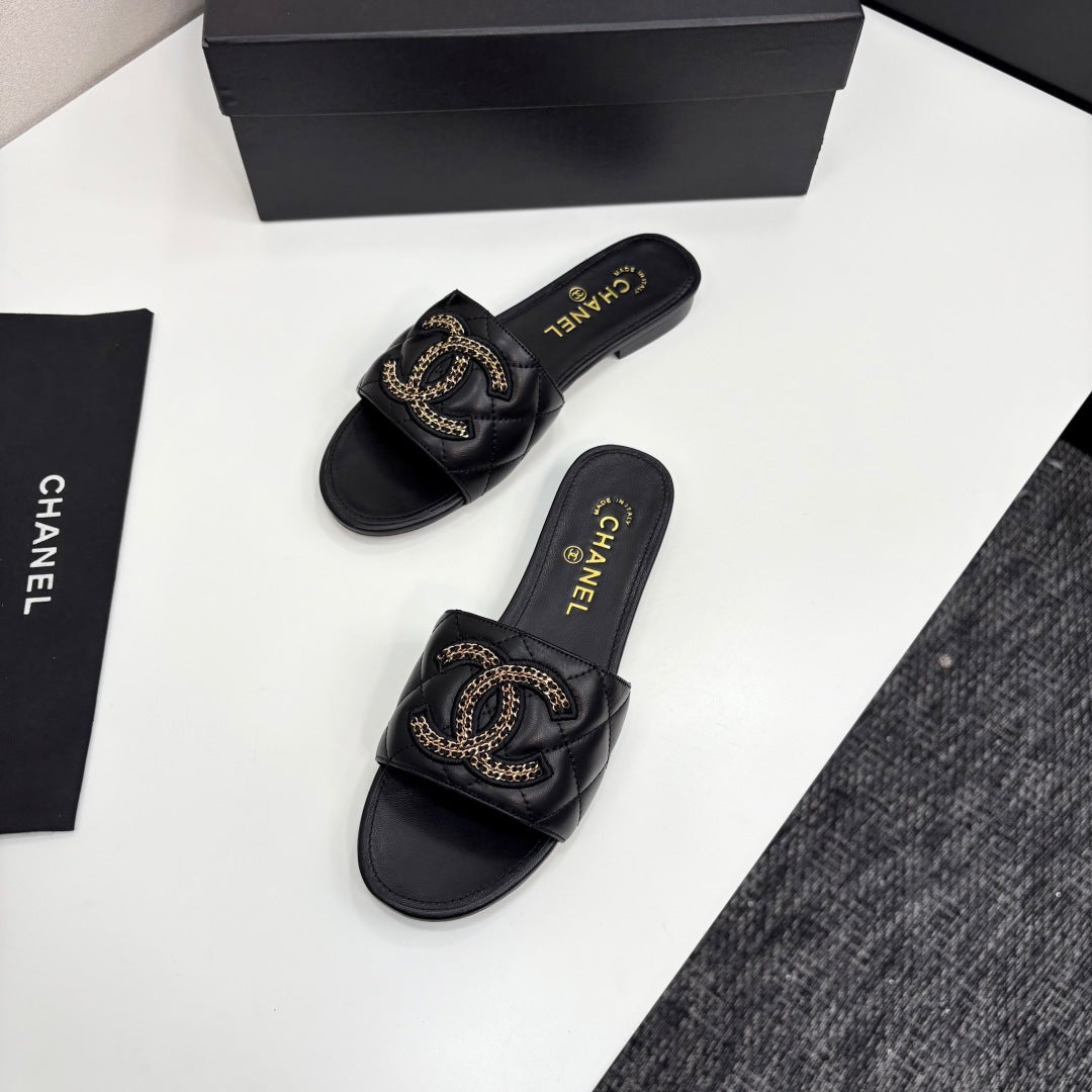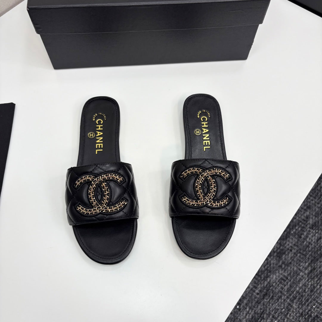 CC 25 Doubble Chain Embroidered Slippers Black Quilted Sheepskin 352490