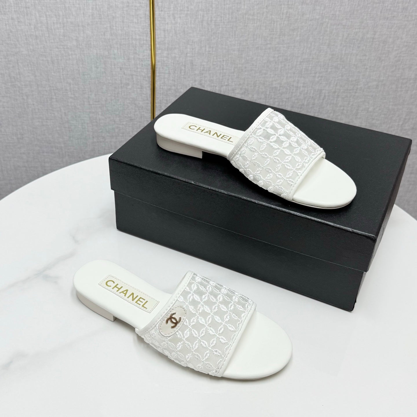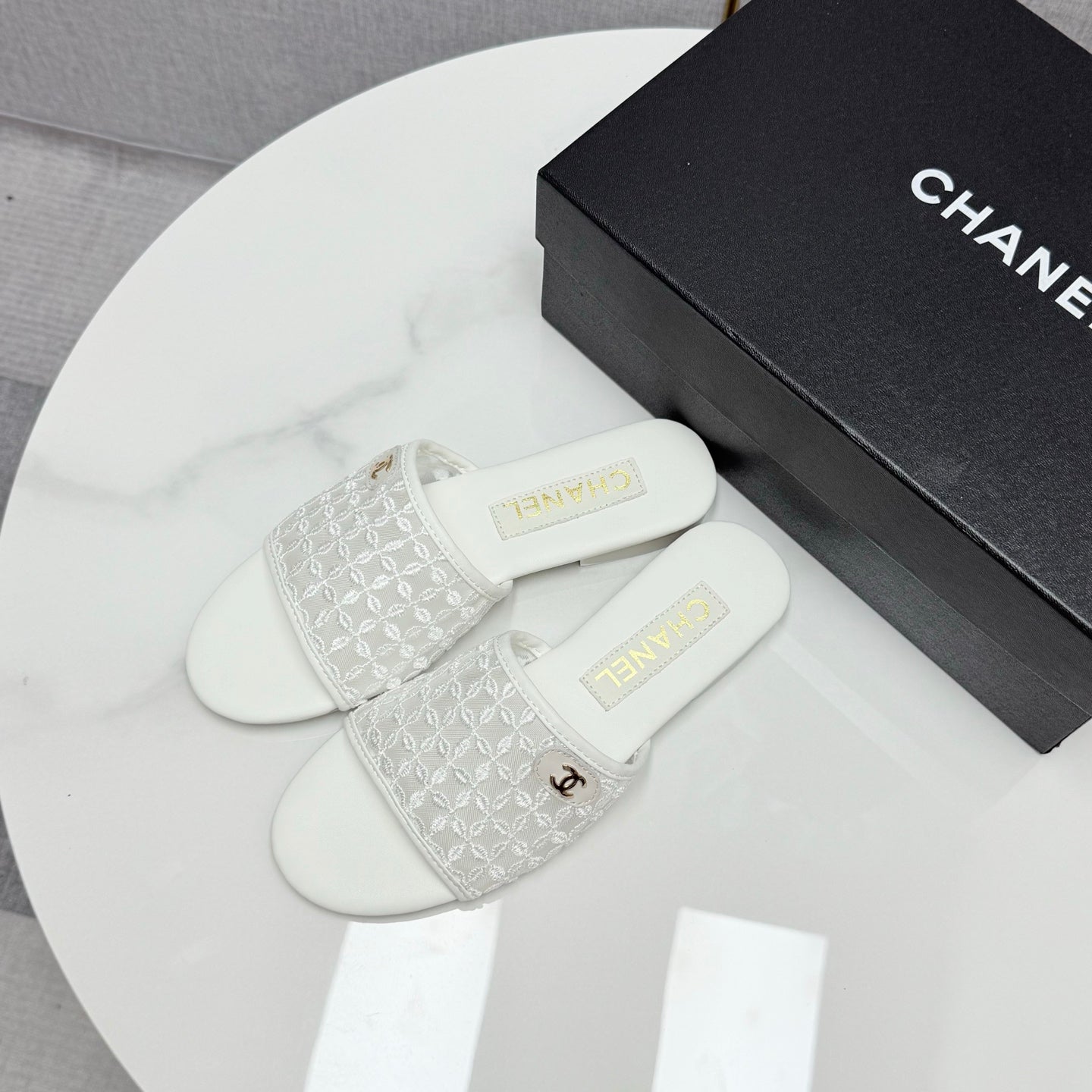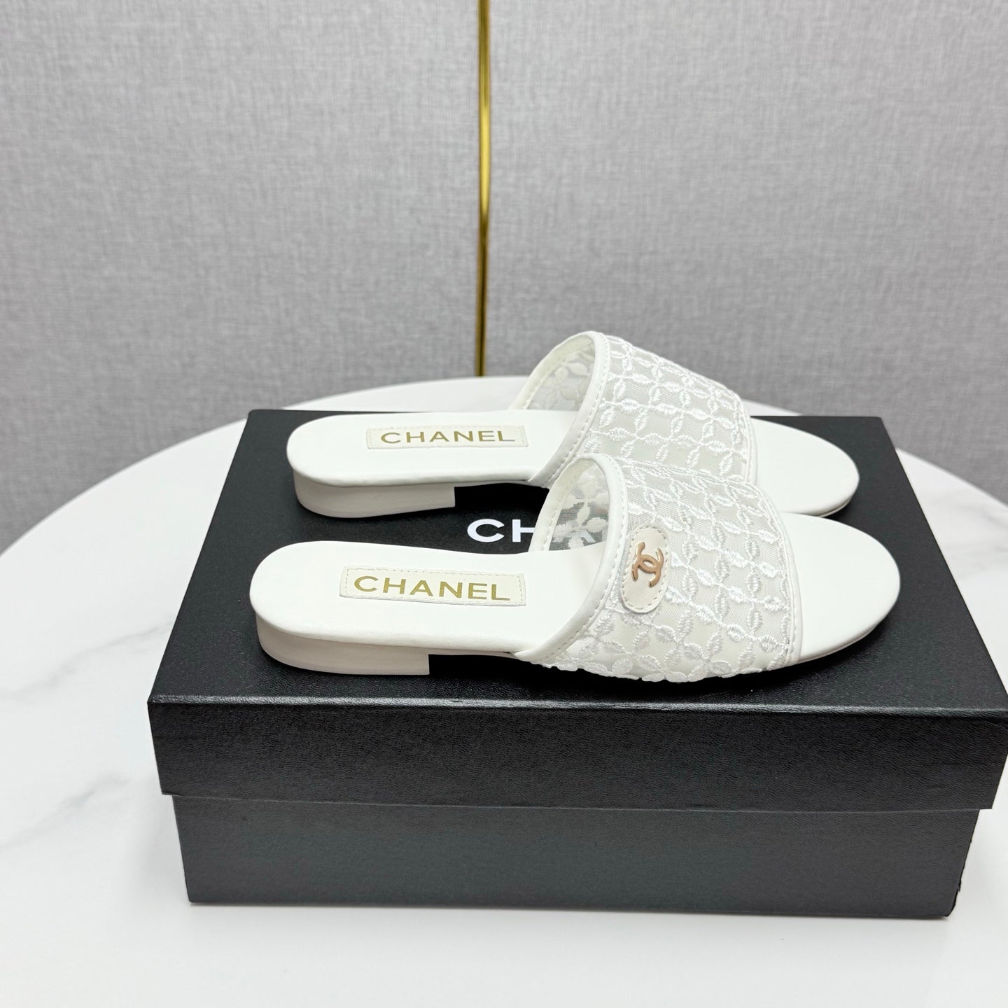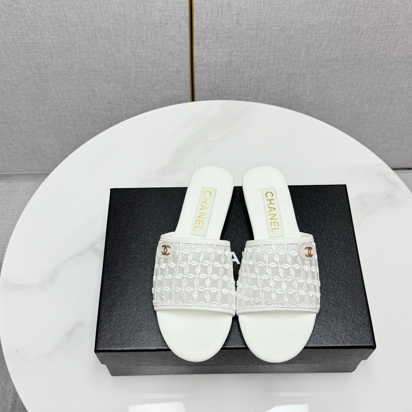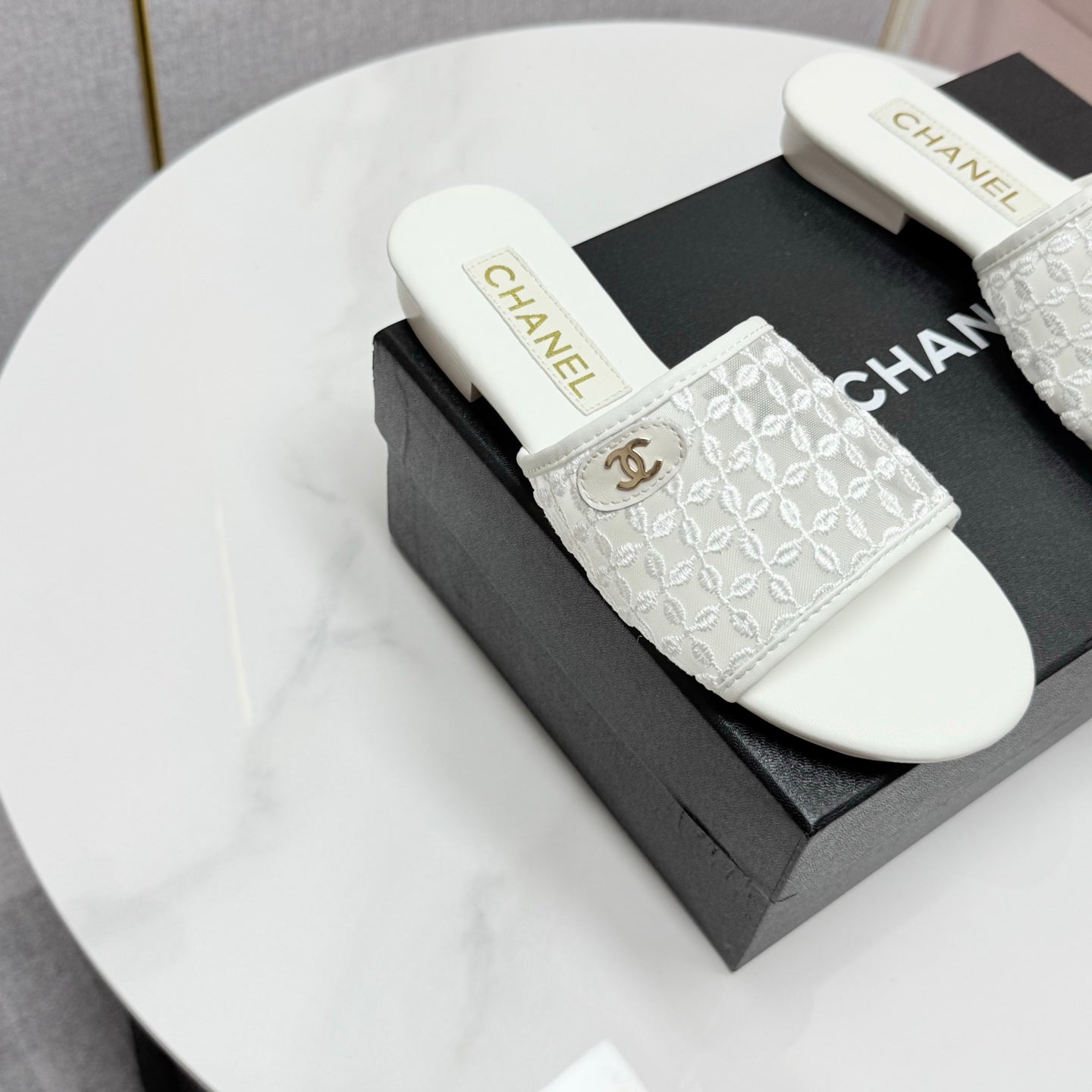 CC 25 Flat Mule Sandals White Mesh And Sheepskin 368805