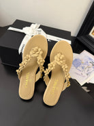 CC 25 Flower Thong Slippers Beige Cowhide 233417