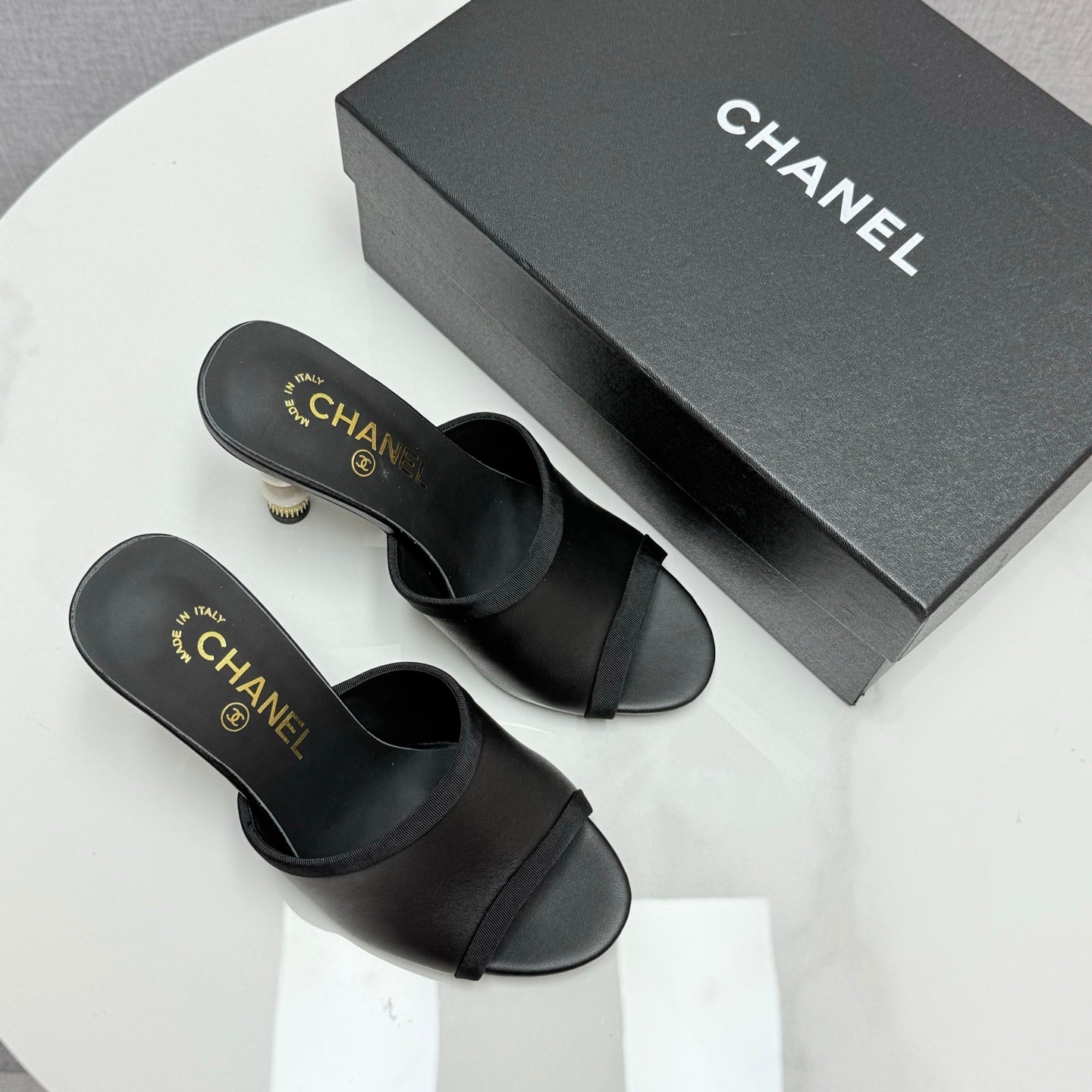 CC 25 High Heel Slippers 85mn Black Sheepskin 368792