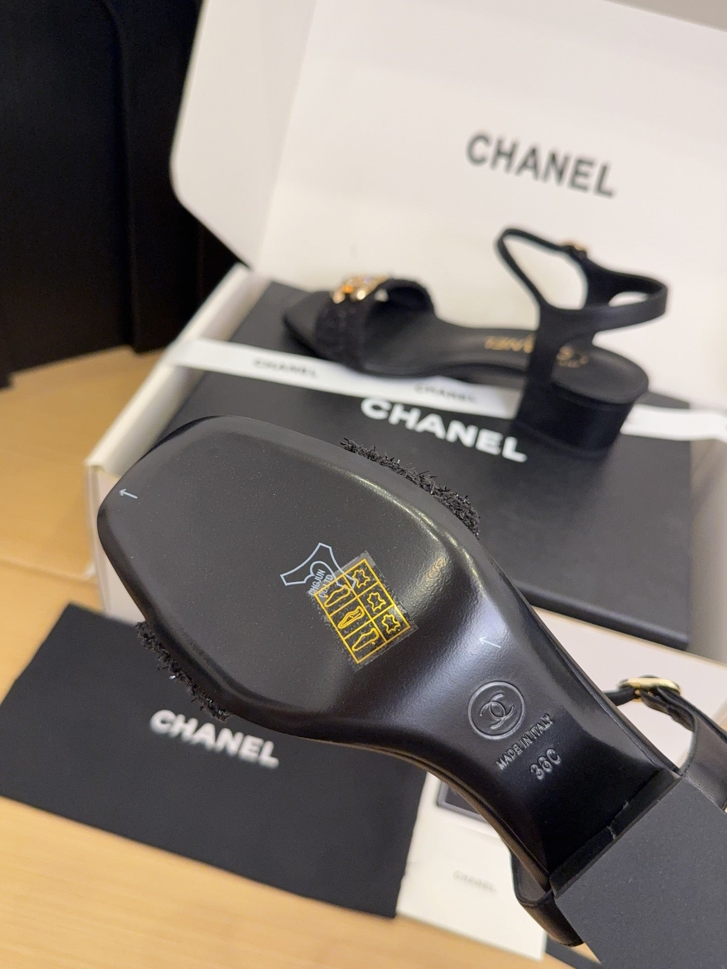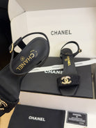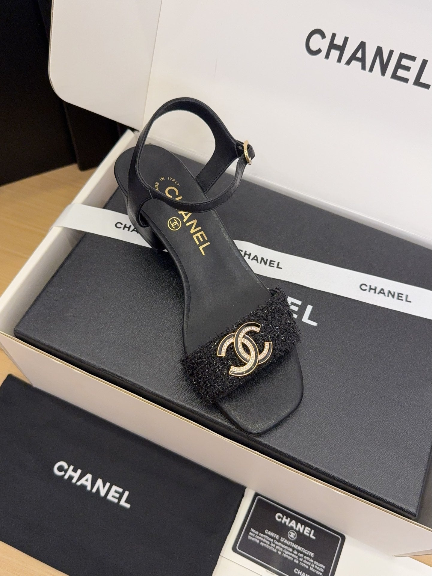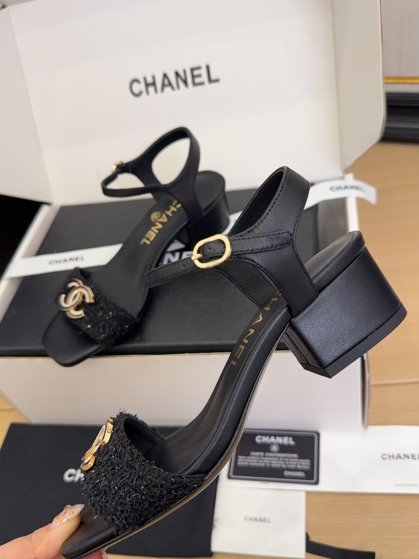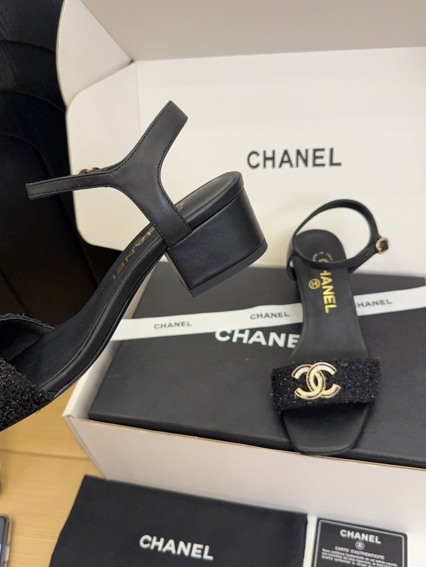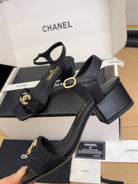 CC 25 High Heels 40 Sandals Black Fabric And Sheepskin Square Toe 277713