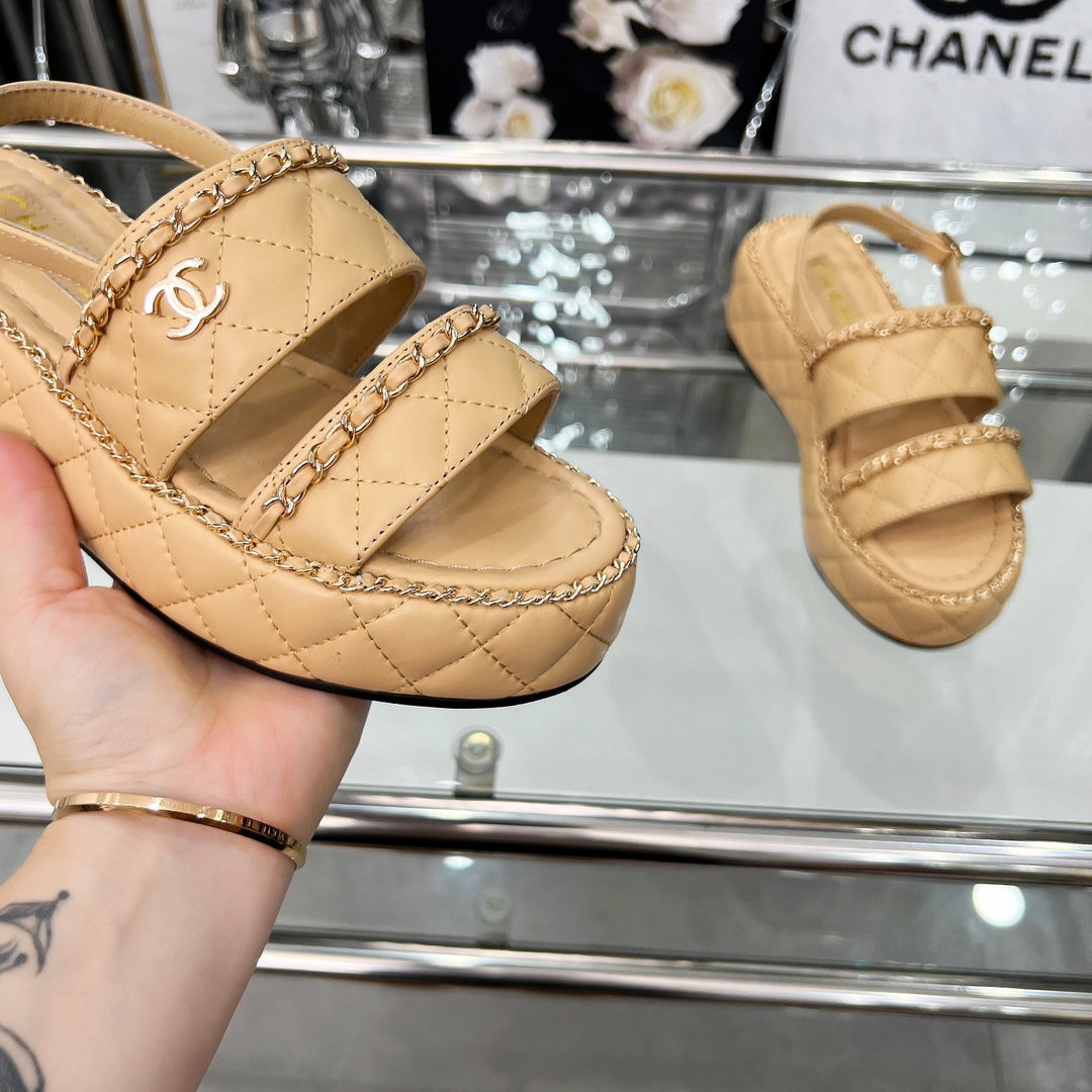 CC 25 Sandals Leather Chain 6cm Beige Lambskin 338654