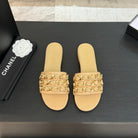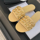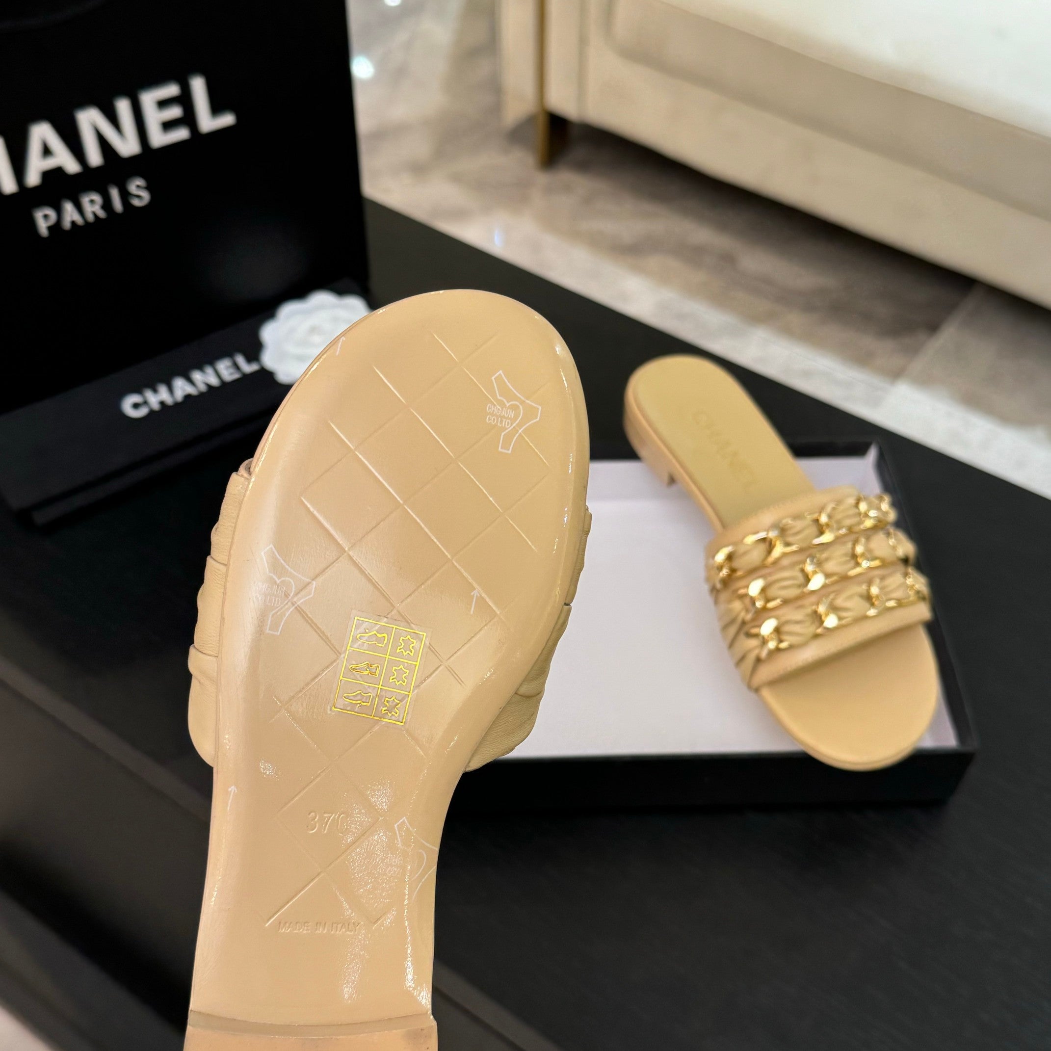 CC 25B Flat Mule Sandals Beige Sheepskin With Chain 373816