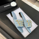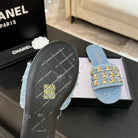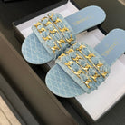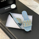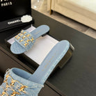 CC 25B Flat Mule Sandals Light Blue Denim With Chain 373813