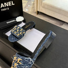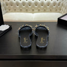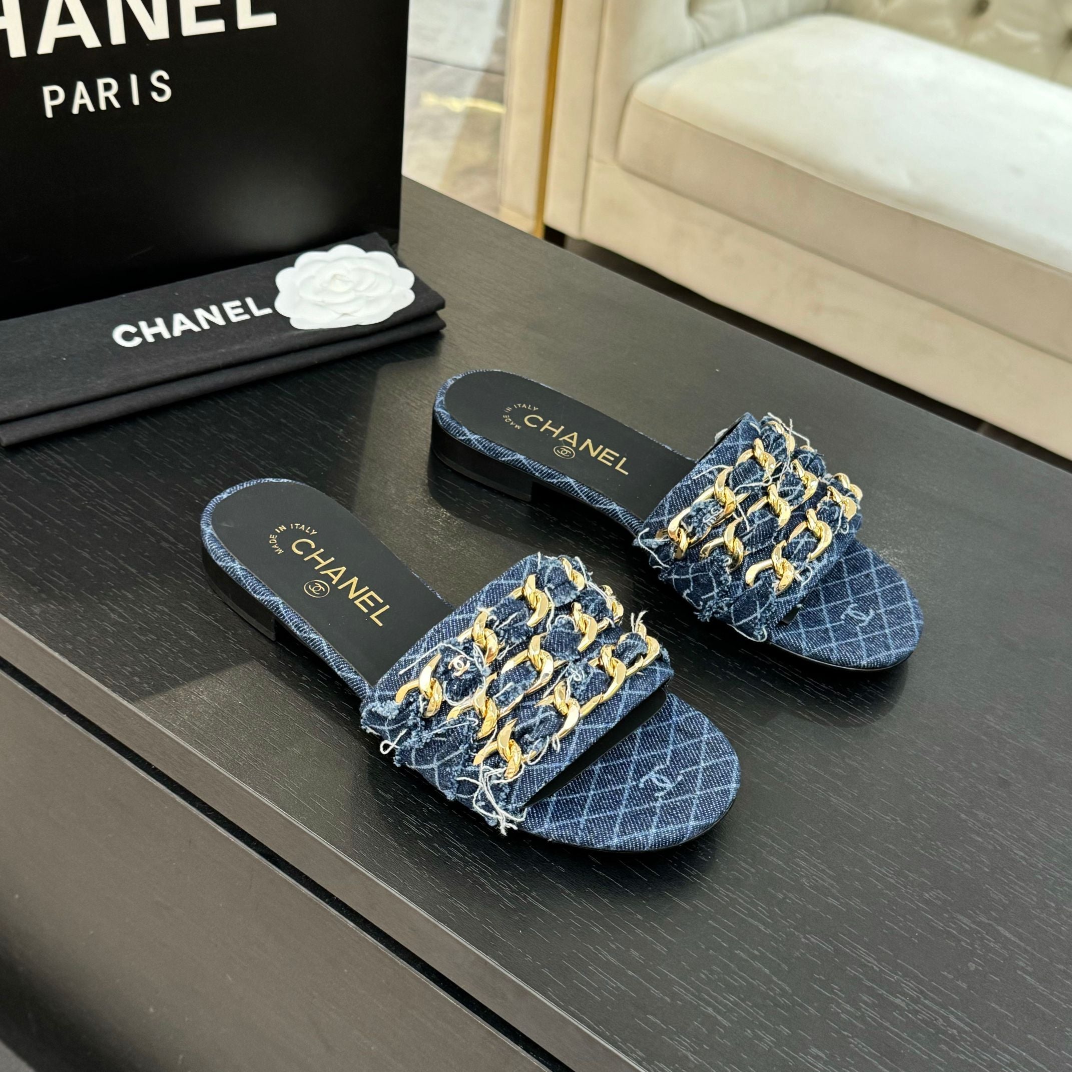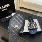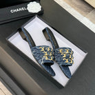 CC 25B Flat Mule Sandals Navy Blue Denim With Chain 373812