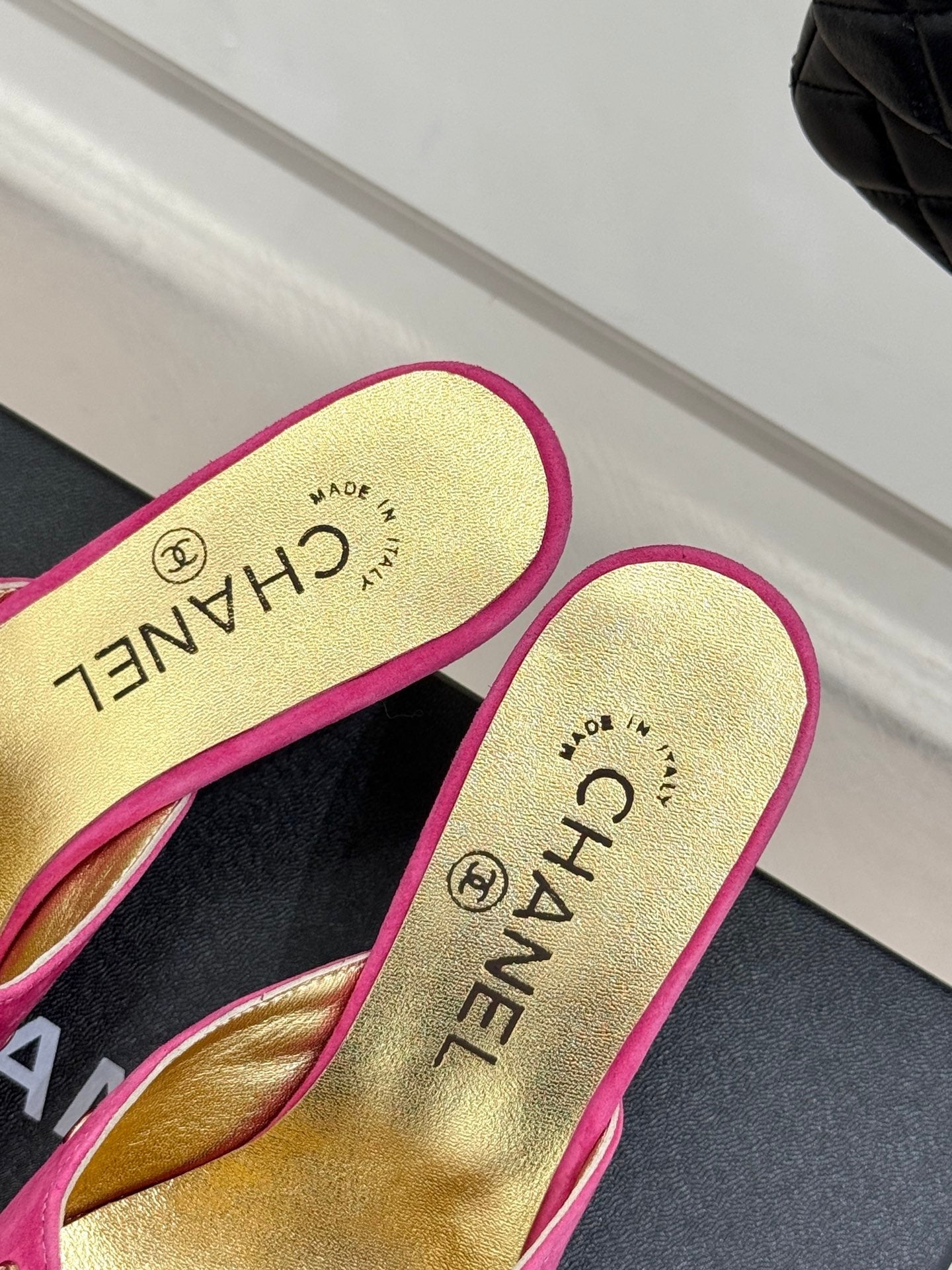 CC 25C Bowknot Pointed High Heel Half Slippers 60mm Pink Suede 265656