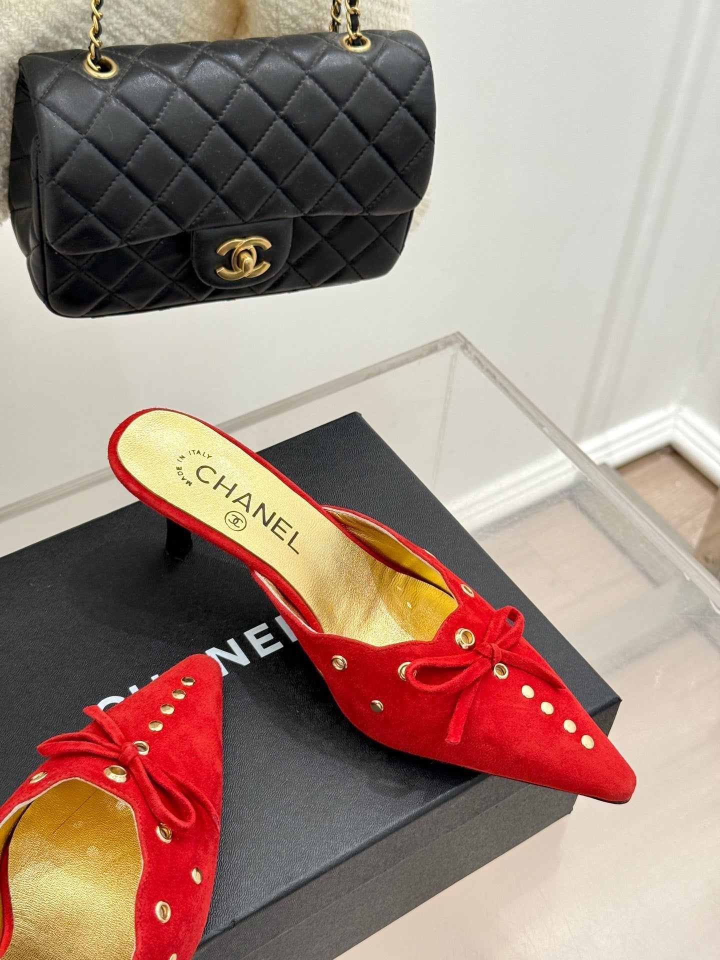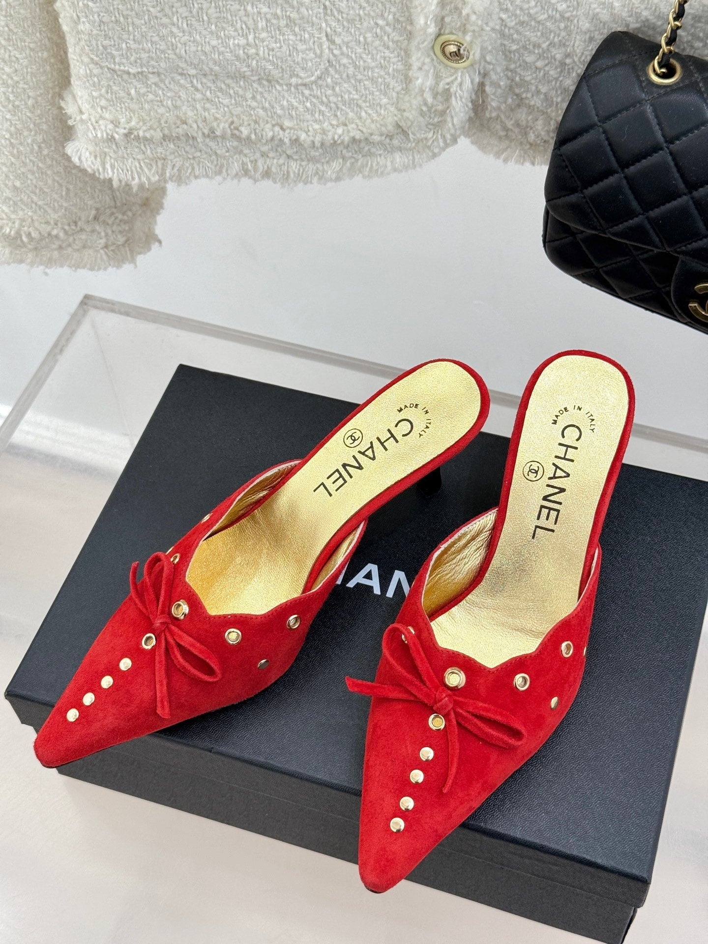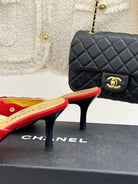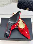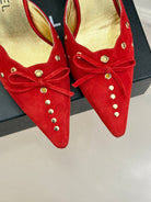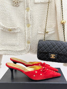 CC 25C Bowknot Pointed High Heel Half Slippers 60mm Red Suede 265658