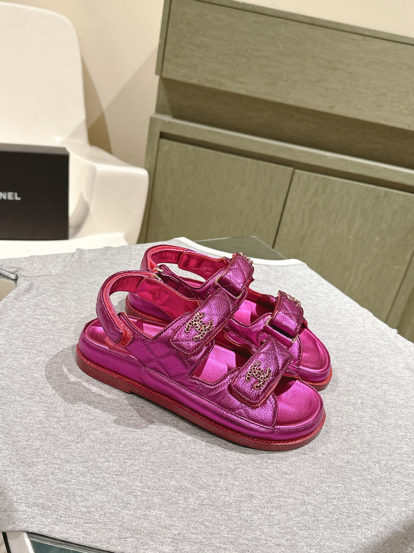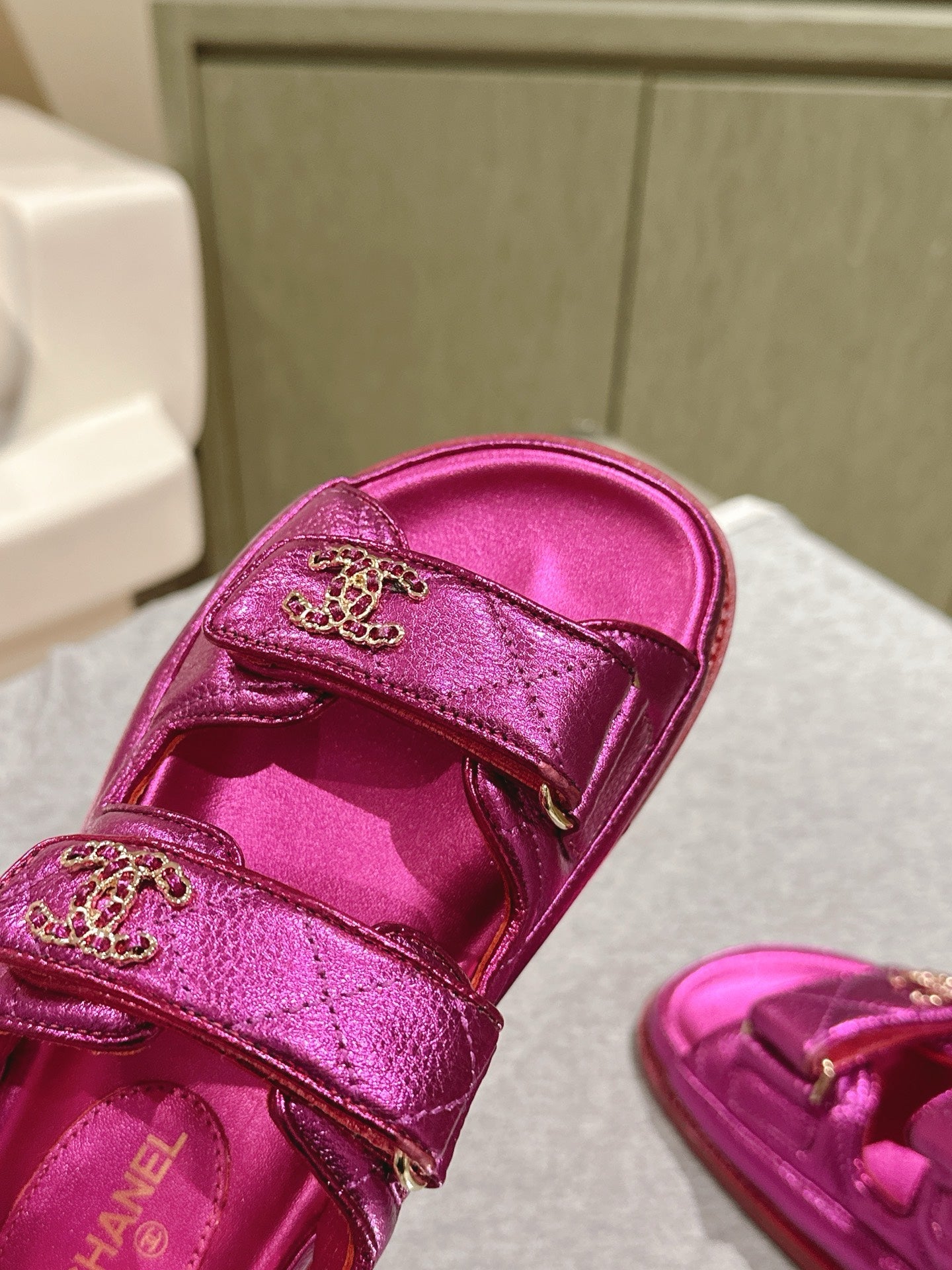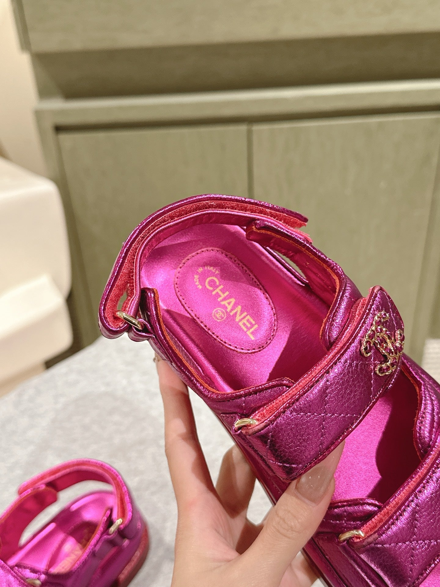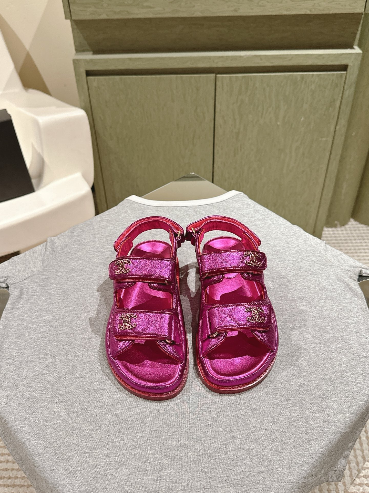 CC 25C Dad Sandals Pink Metalic Grained Calfskin 462233