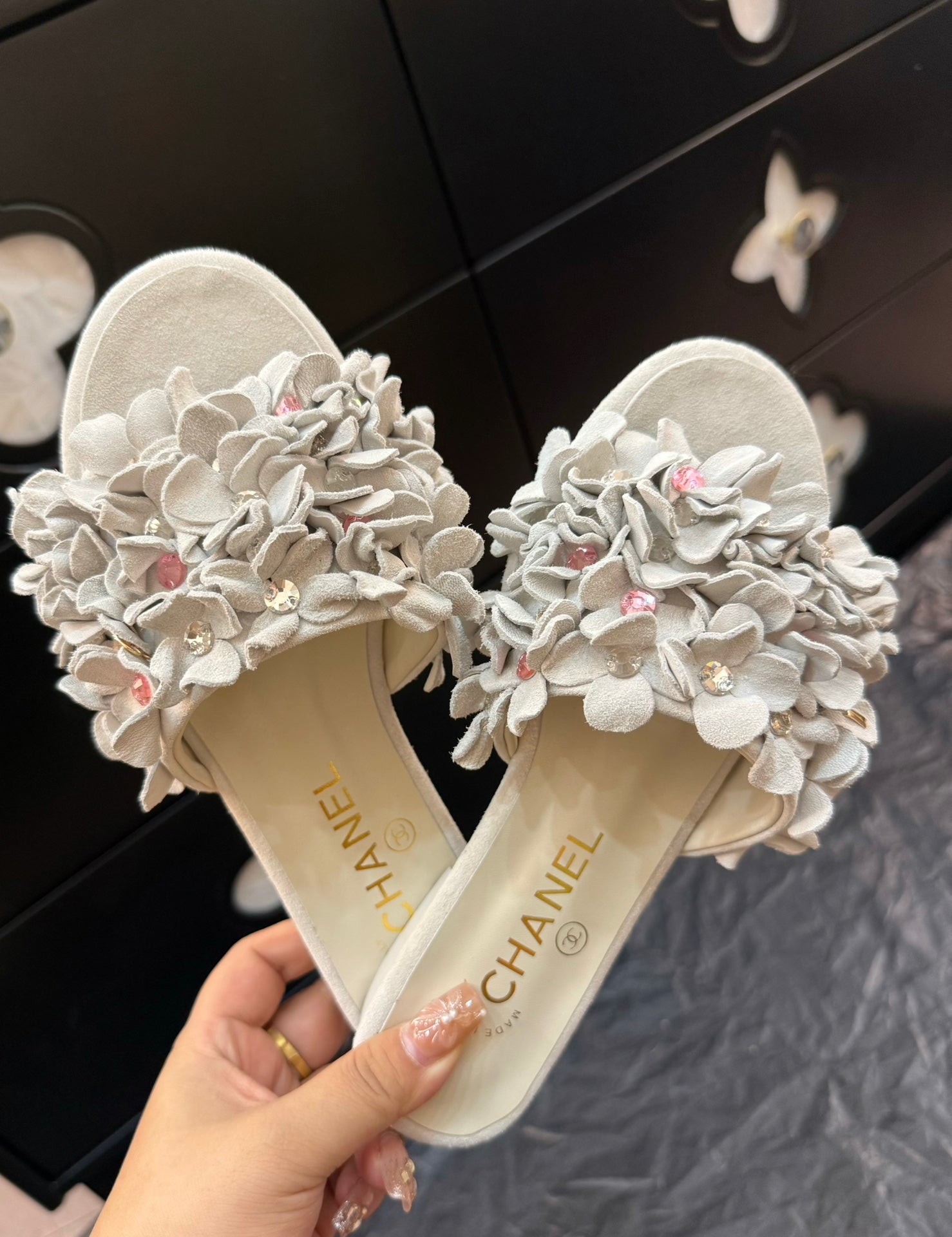 CC 25C Mules Grey Suede Strass