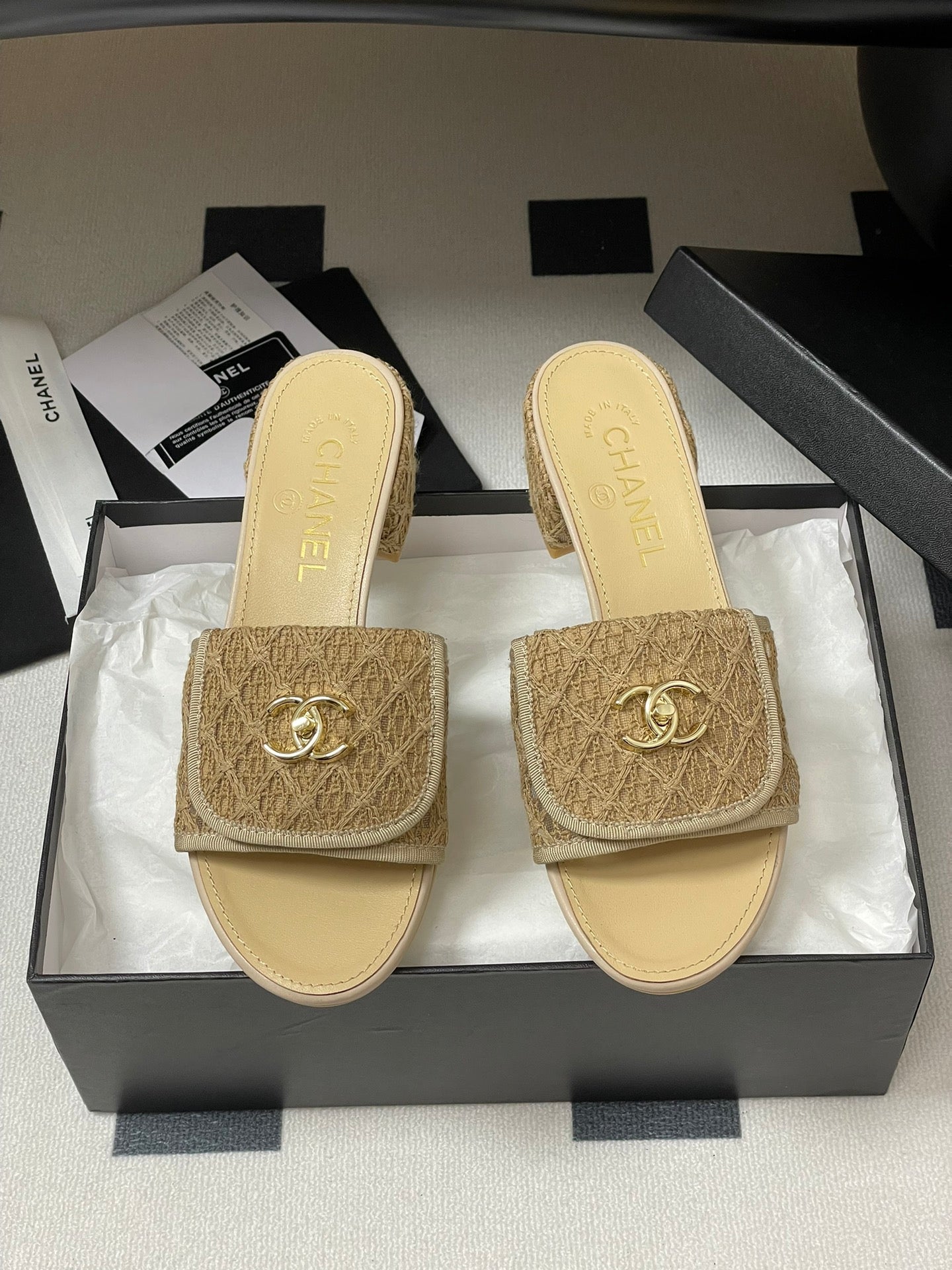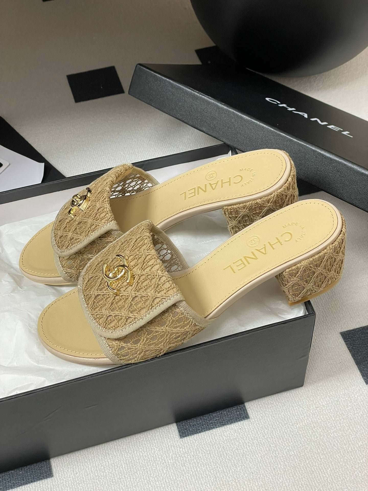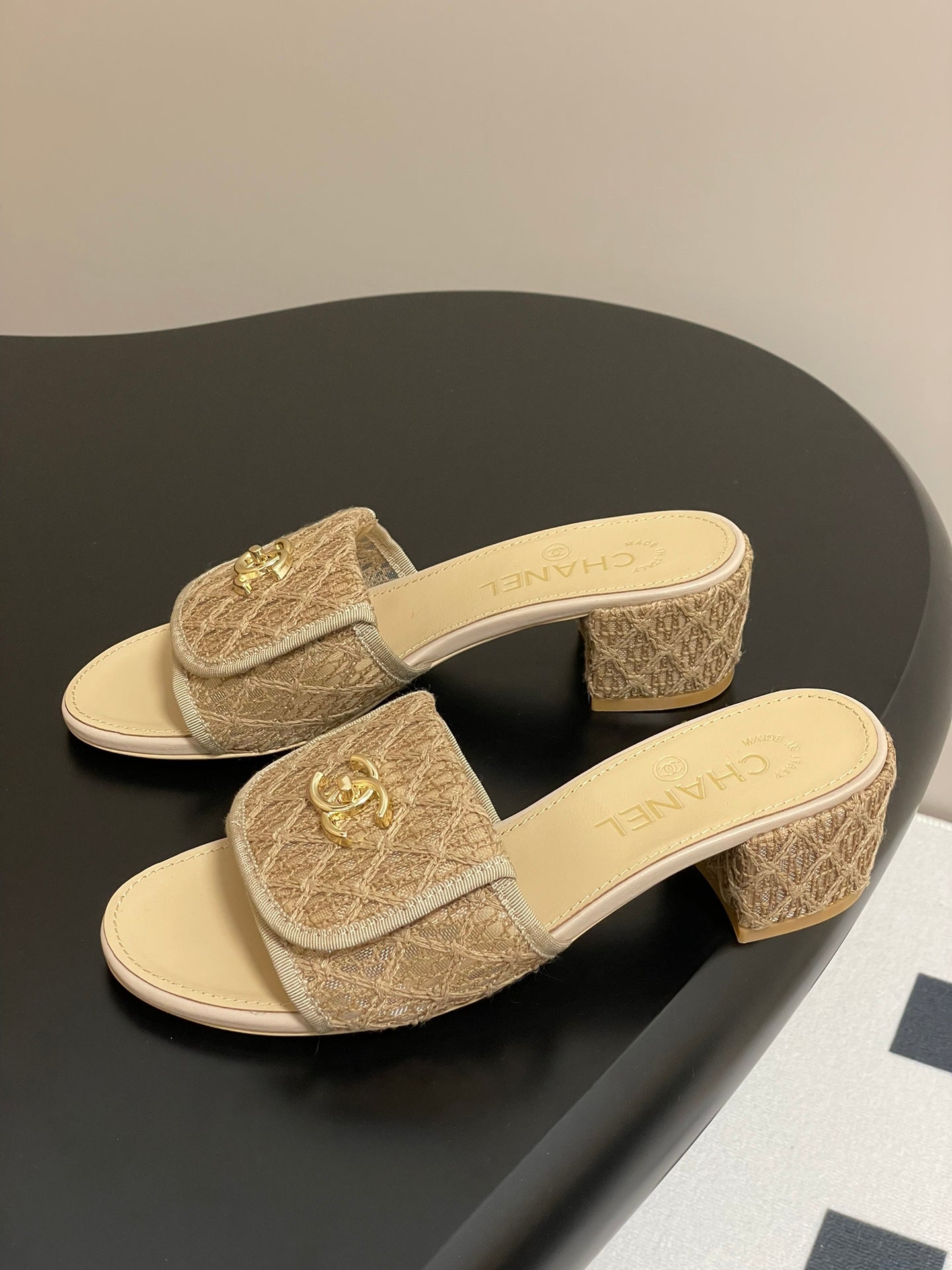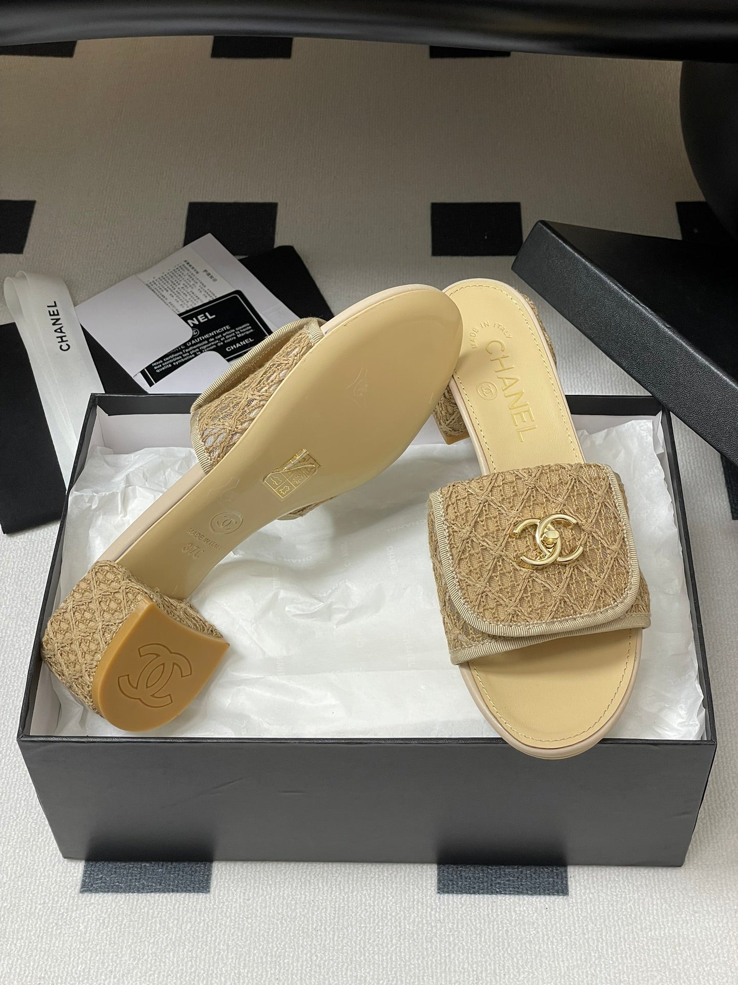 CC 25S Buckle Bag Mule Sandal 50mm Beige Lace Fabric and Sheepskin 247595