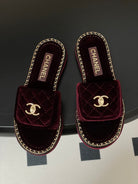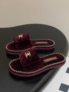 CC 25S Chain Ring Edge Buckle Bag Mule Sandal Wine Velvet 247584