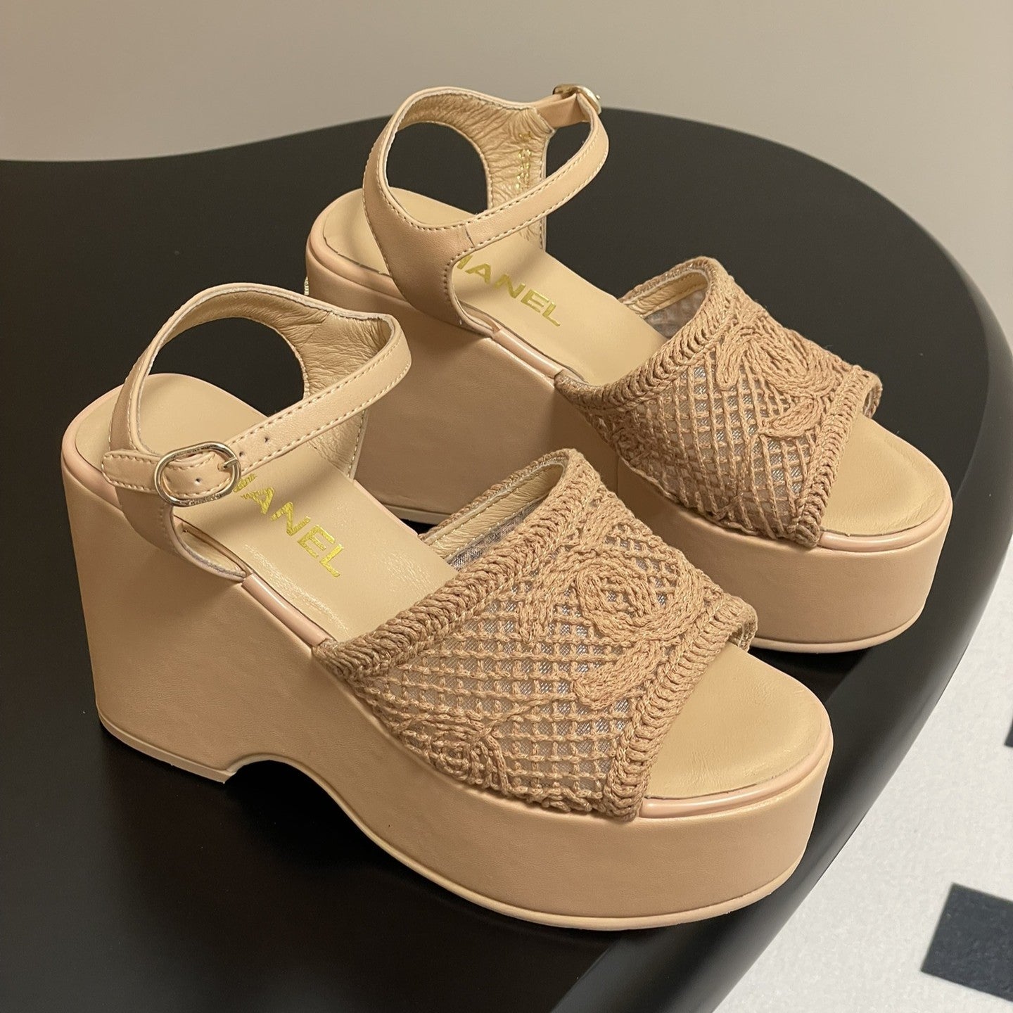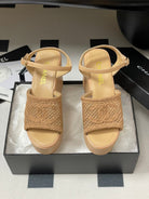 CC 25S Small Wedge Thick-Soled Sandal 10cm Beige Woven 247603