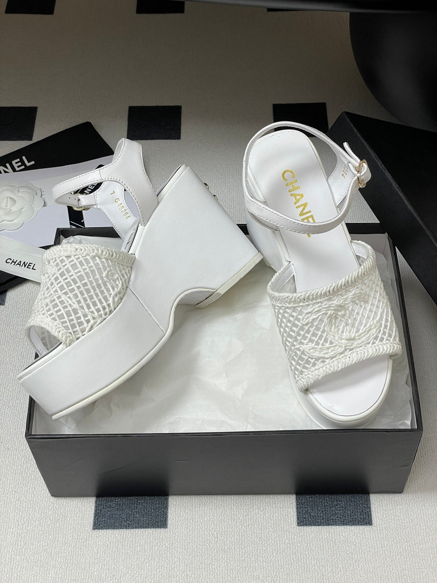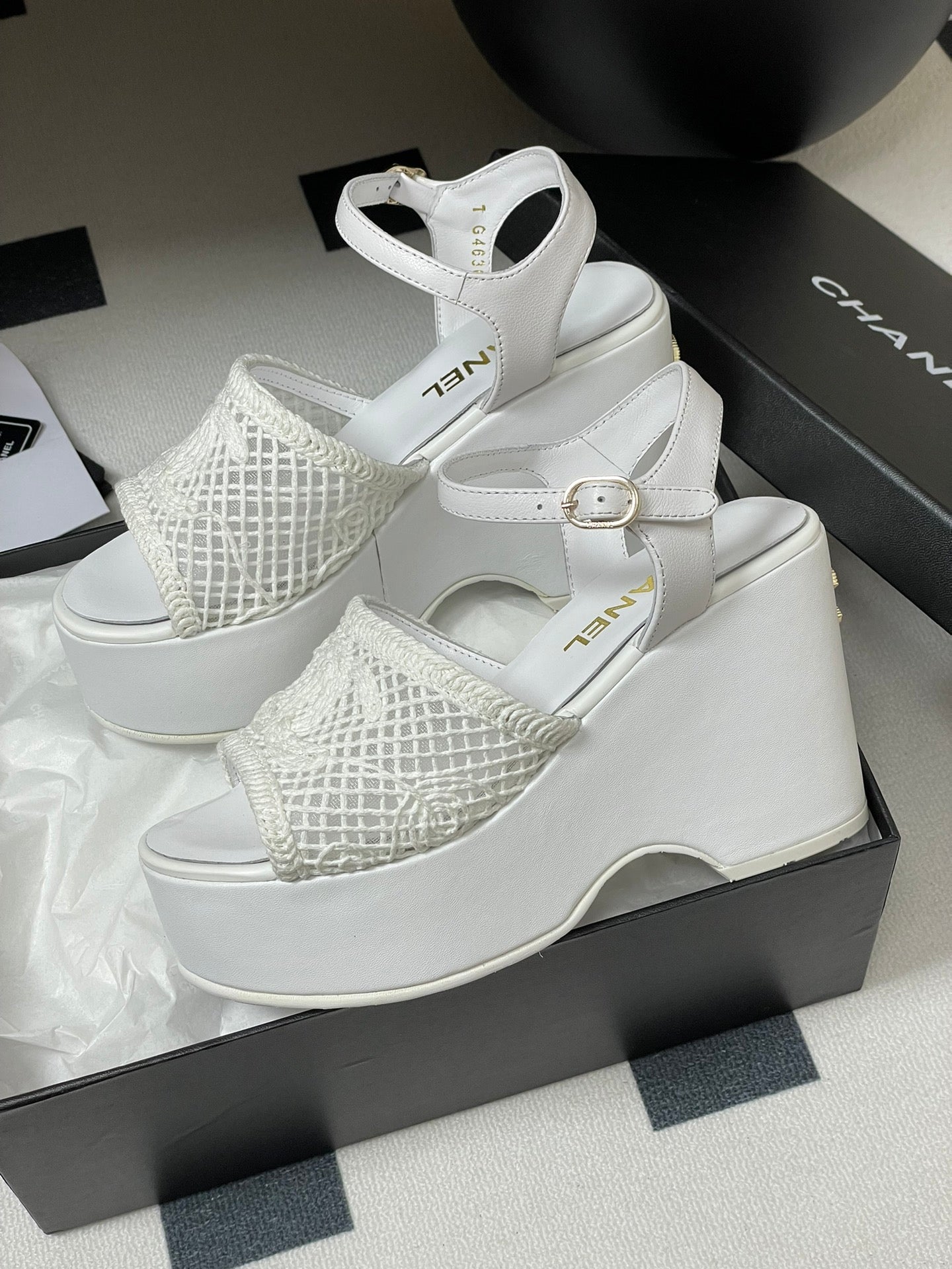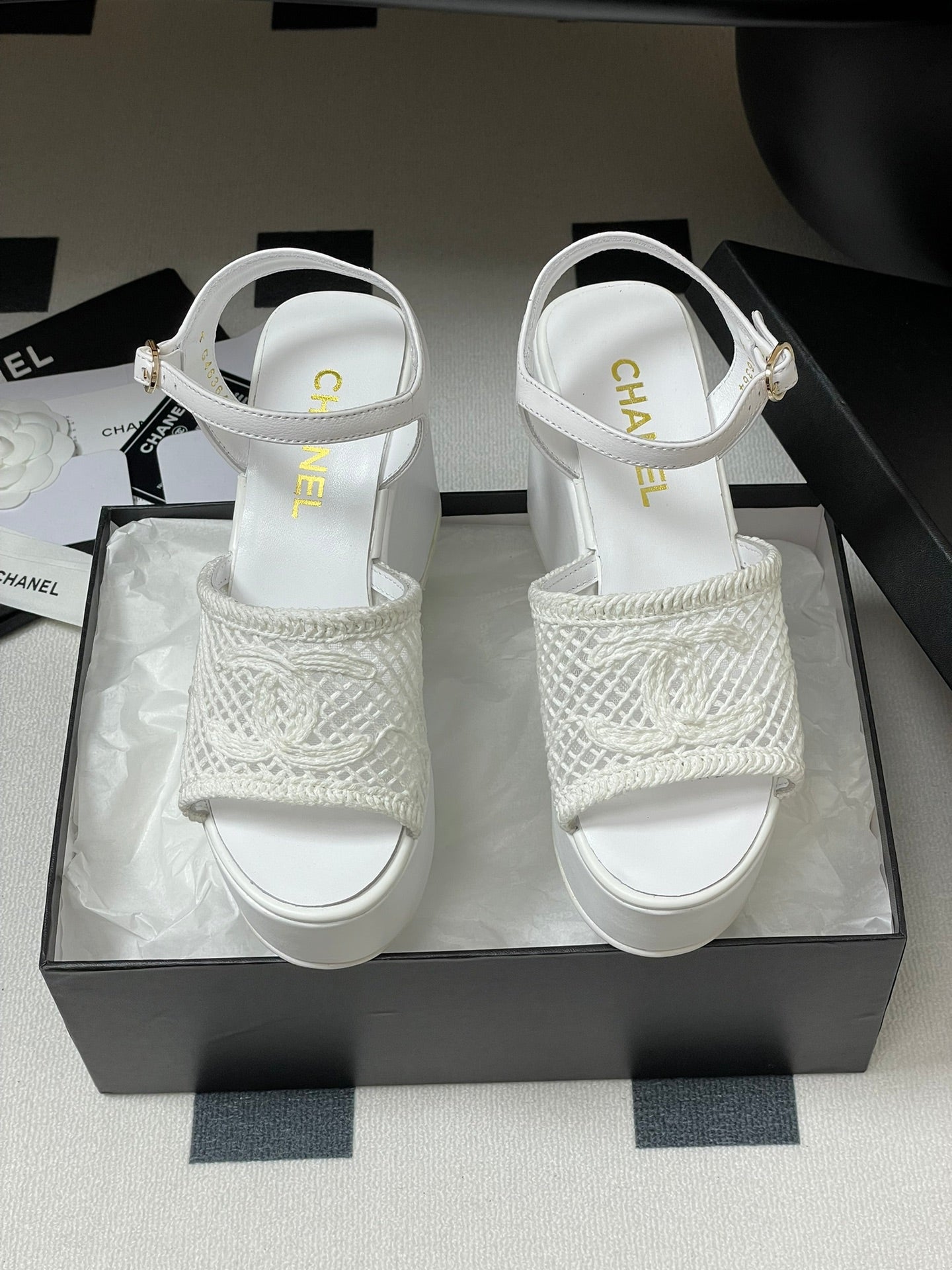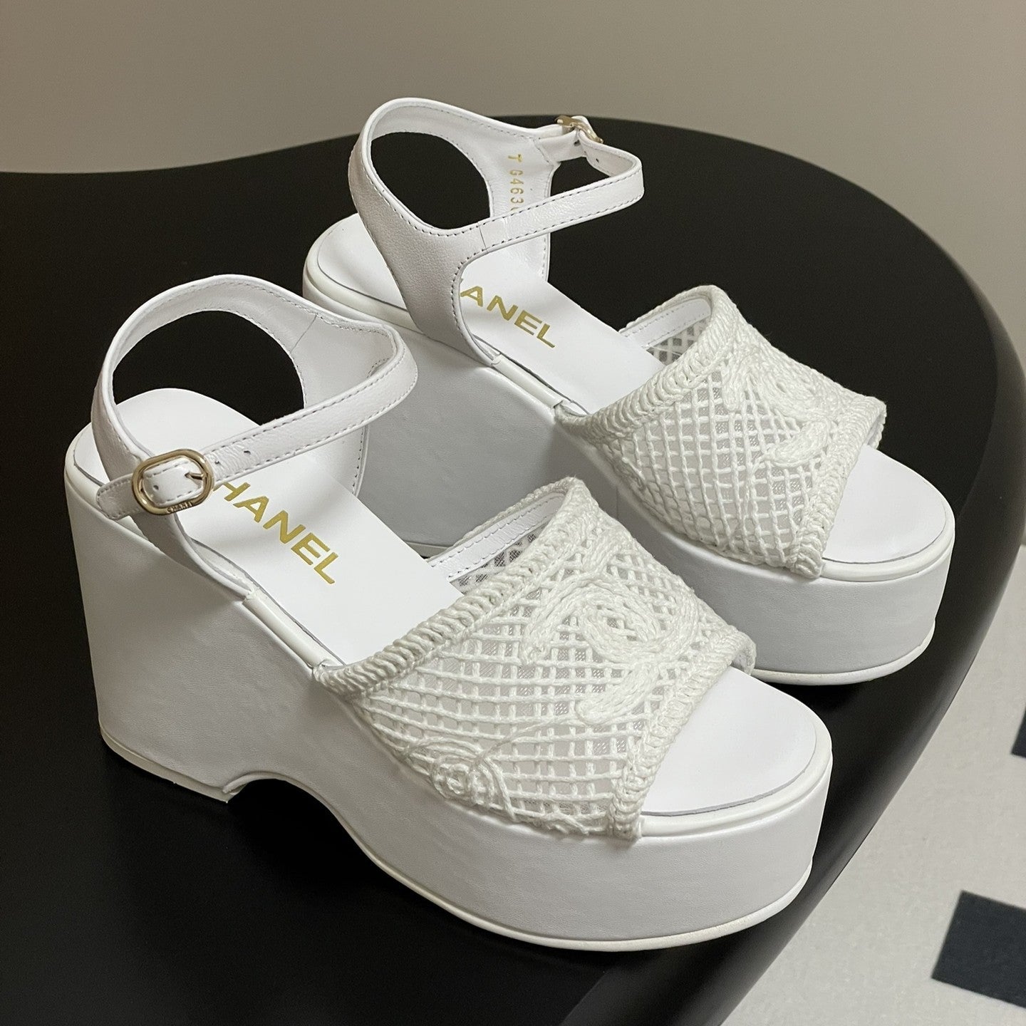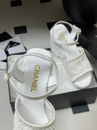CC 25S Small Wedge Thick-Soled Sandal 10cm White Woven 247605
