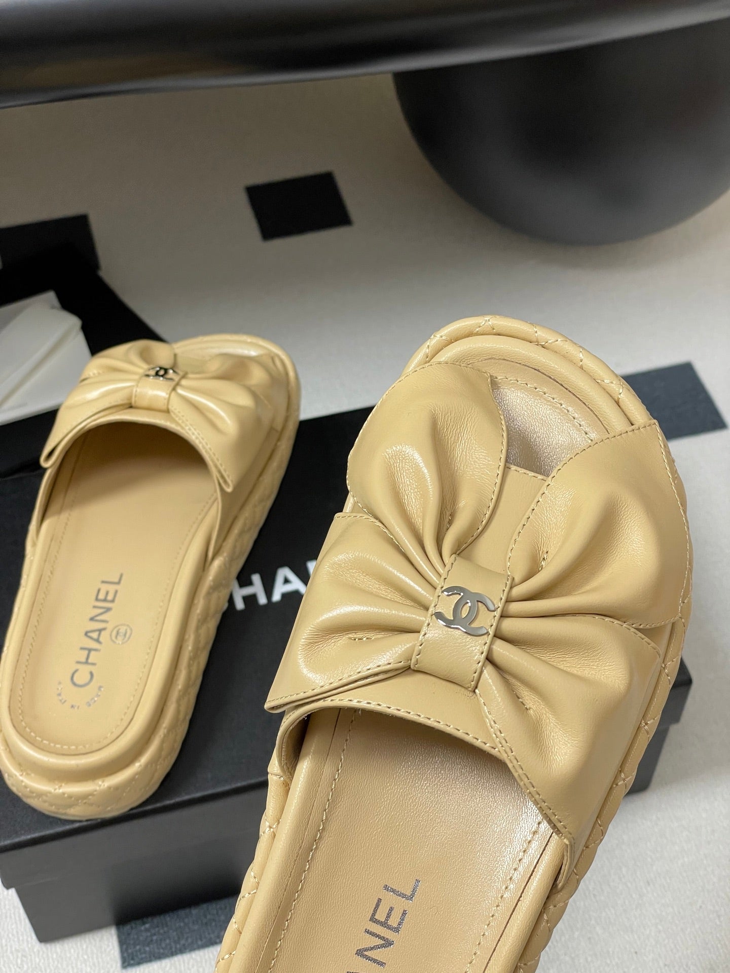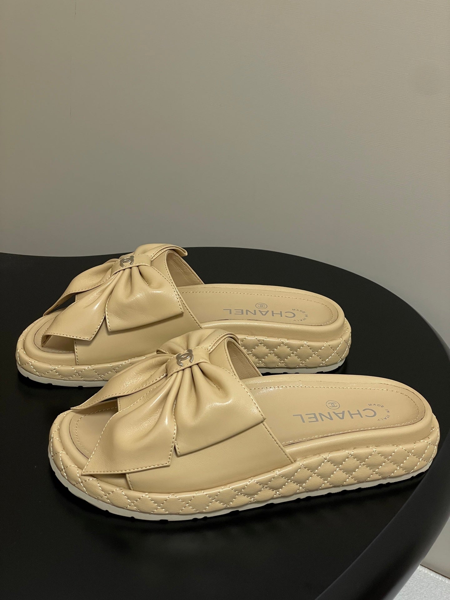CC 25SS Big Bow Thick-soled Mule Sandals Beige Lambskin 319706