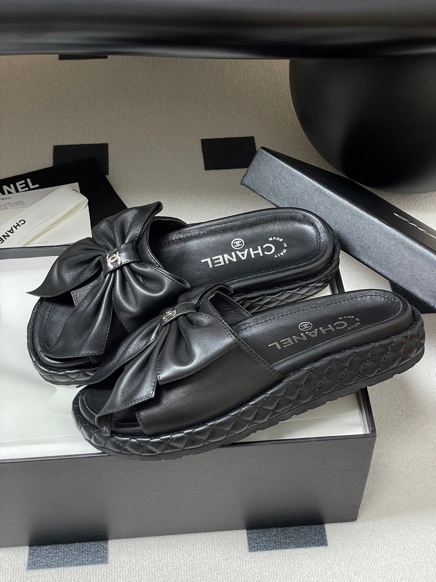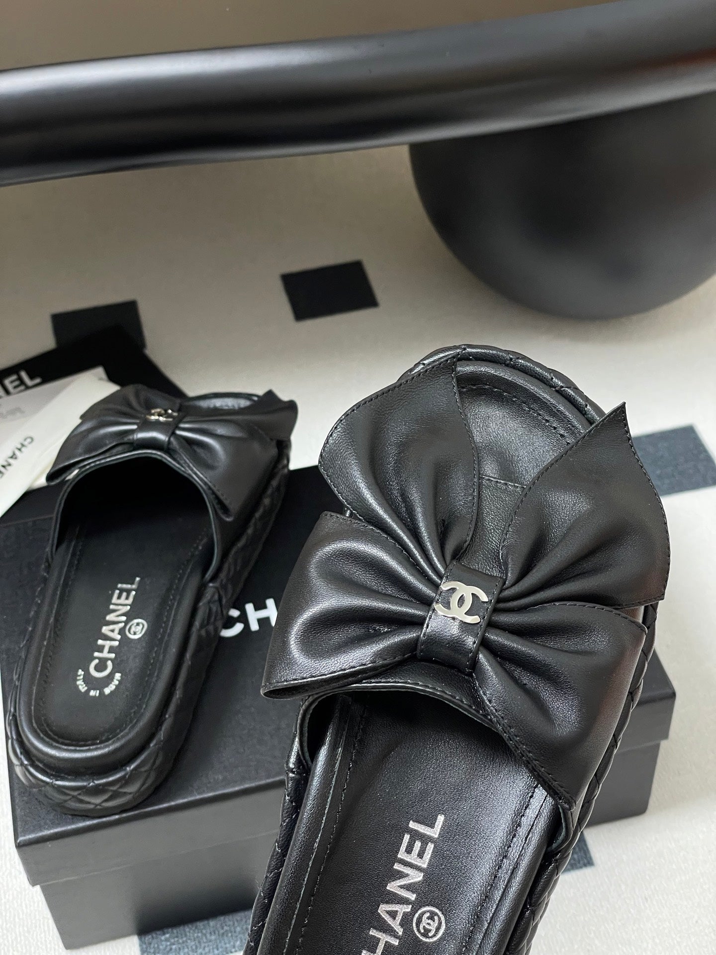 CC 25SS Big Bow Thick-soled Mule Sandals Black Lambskin 319708