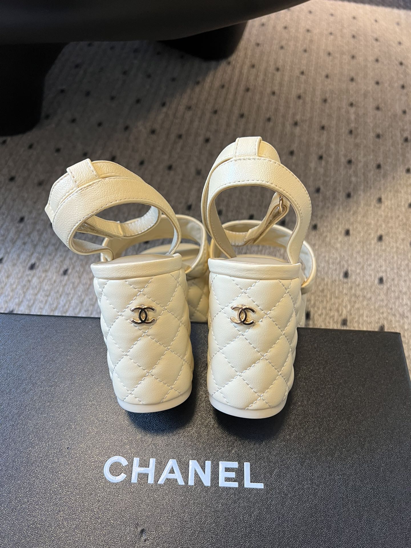 CC 25SS Platform Sandals 5.5cm Beige Sheepskin 319627