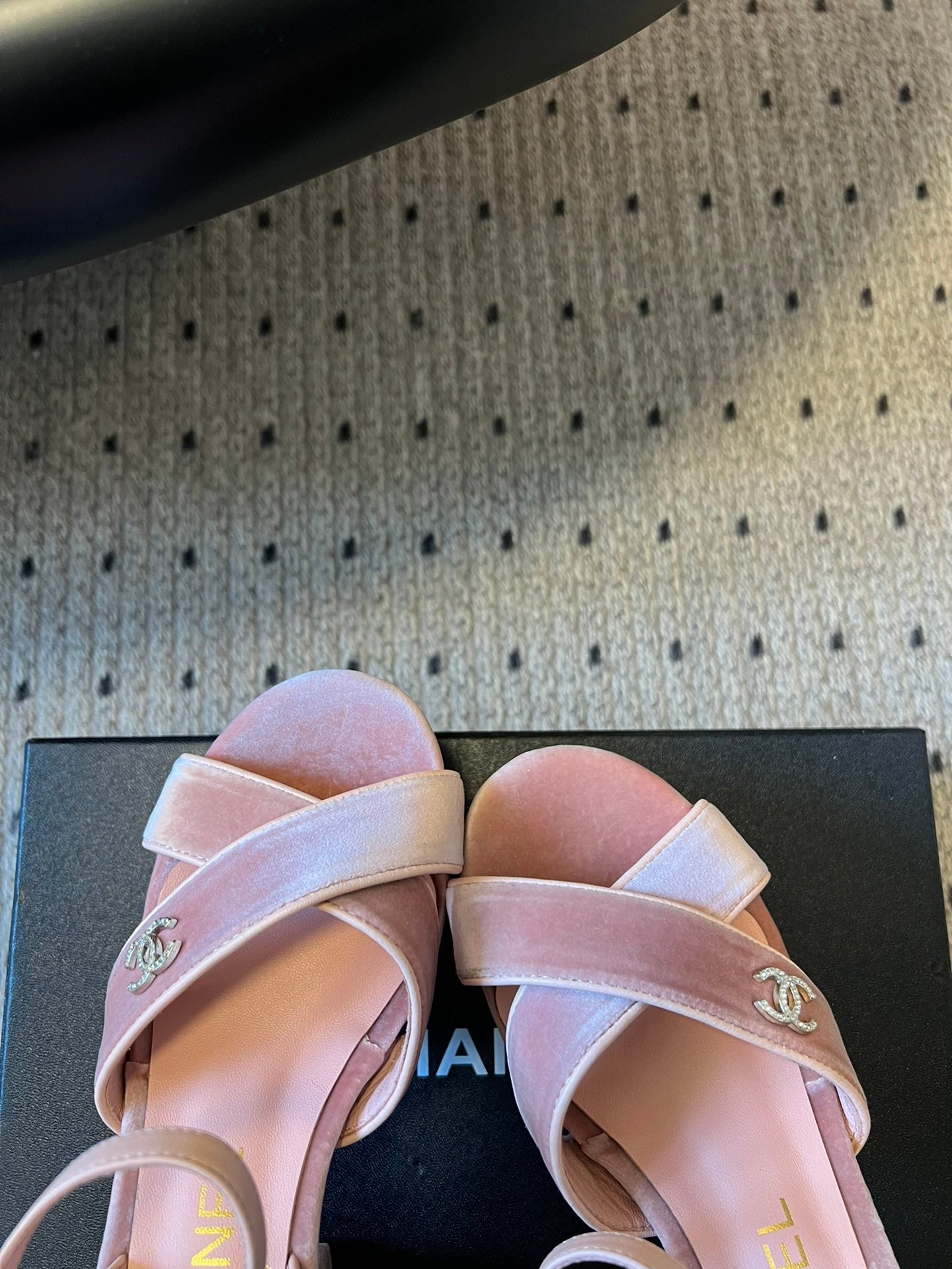 CC 25SS Platform Sandals 5.5cm Pink Lambskin And Velvet 319626