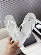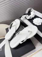 CC 25SS Thong Sandals Double C Rhinestone White Sheepskin 352434