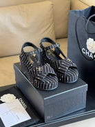 CC CLASSIC WEDGE SANDALS IN BLACK WHITE LAMBSKIN SUEDE